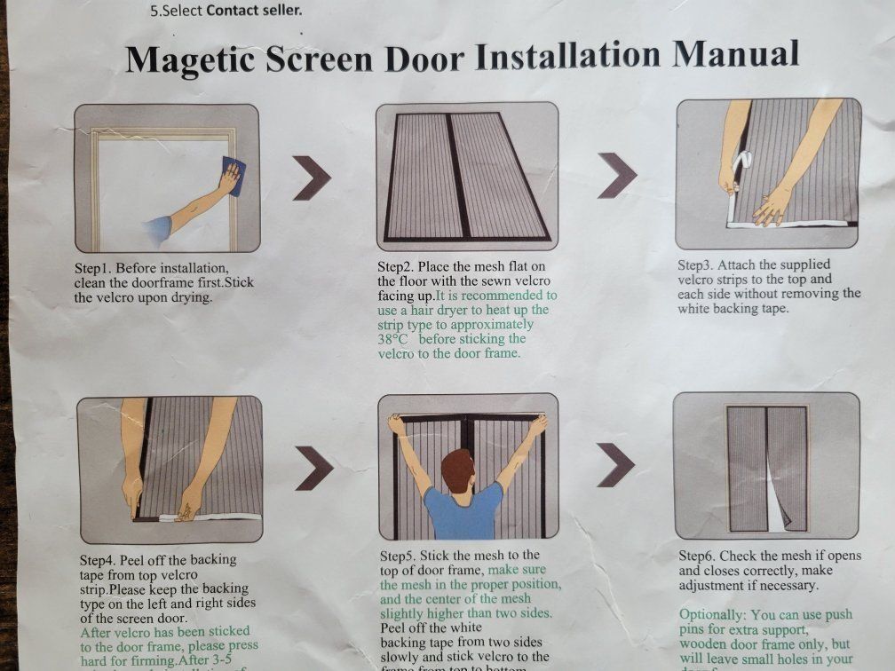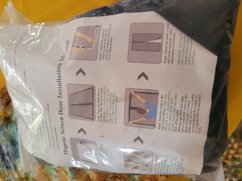VenmoMagnetic screen door. Opened but never used. Includes velcro and tacks. 39x83"