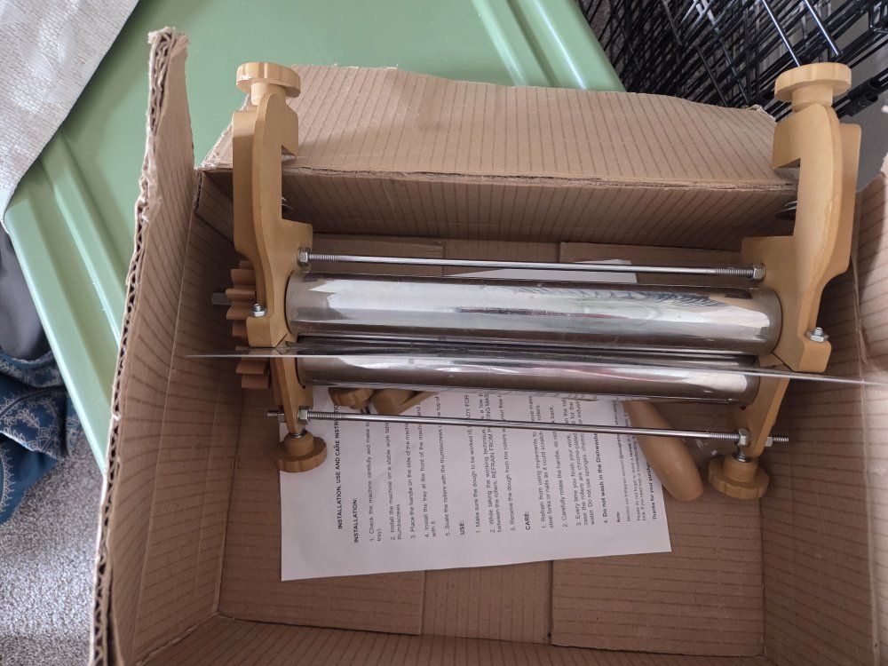 pastry roller/laminator about 12in in length mounts to tables and has an adjustment screw to set depth of roller