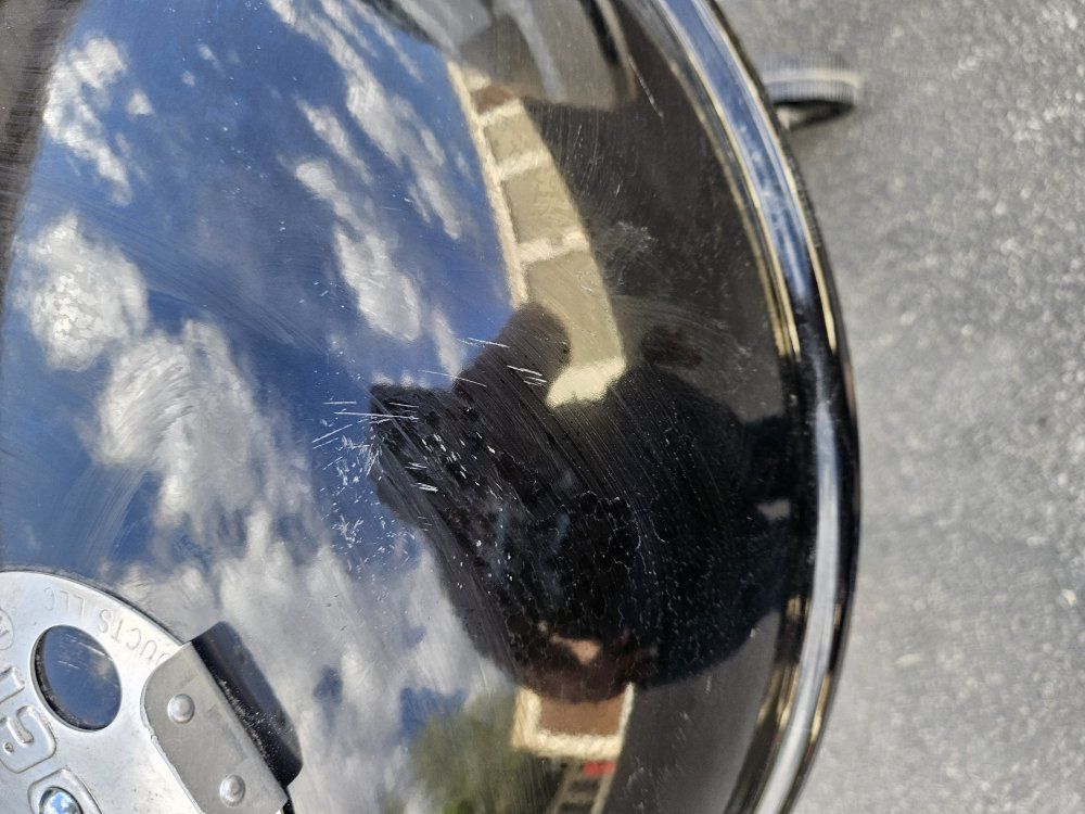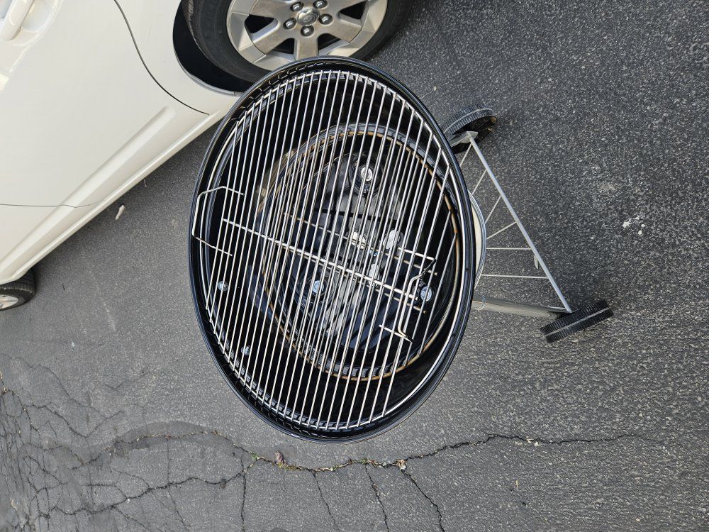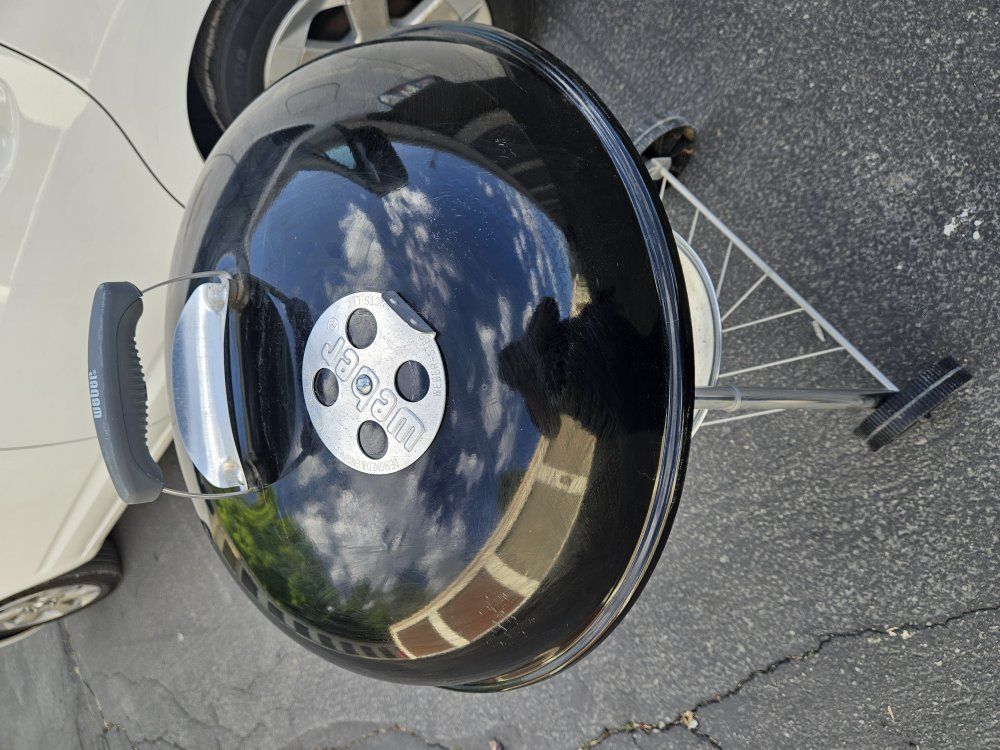 Classic Weber charcoal kettle grill ready for summer. Solid cooker with vented lid, ash pan, wheels, and cooking grate included. These Weber kettles last forever and cook great. Lighty used, but has scratches/scuffs on the lid and body from handling/storage (see pics). Cosmetic only. Still a quality Weber and ready to grill. Features: 22" Weber kettle style grill Adjustable top vent Ash catcher tray Rolling wheels for easy moving Chrome cooking grate included Famous Weber heat control Condition: Good overall condition. Scratches/scuffs on exterior enamel from storage/moving. Structurally solid and usable now. Pickup: Located in Provo.