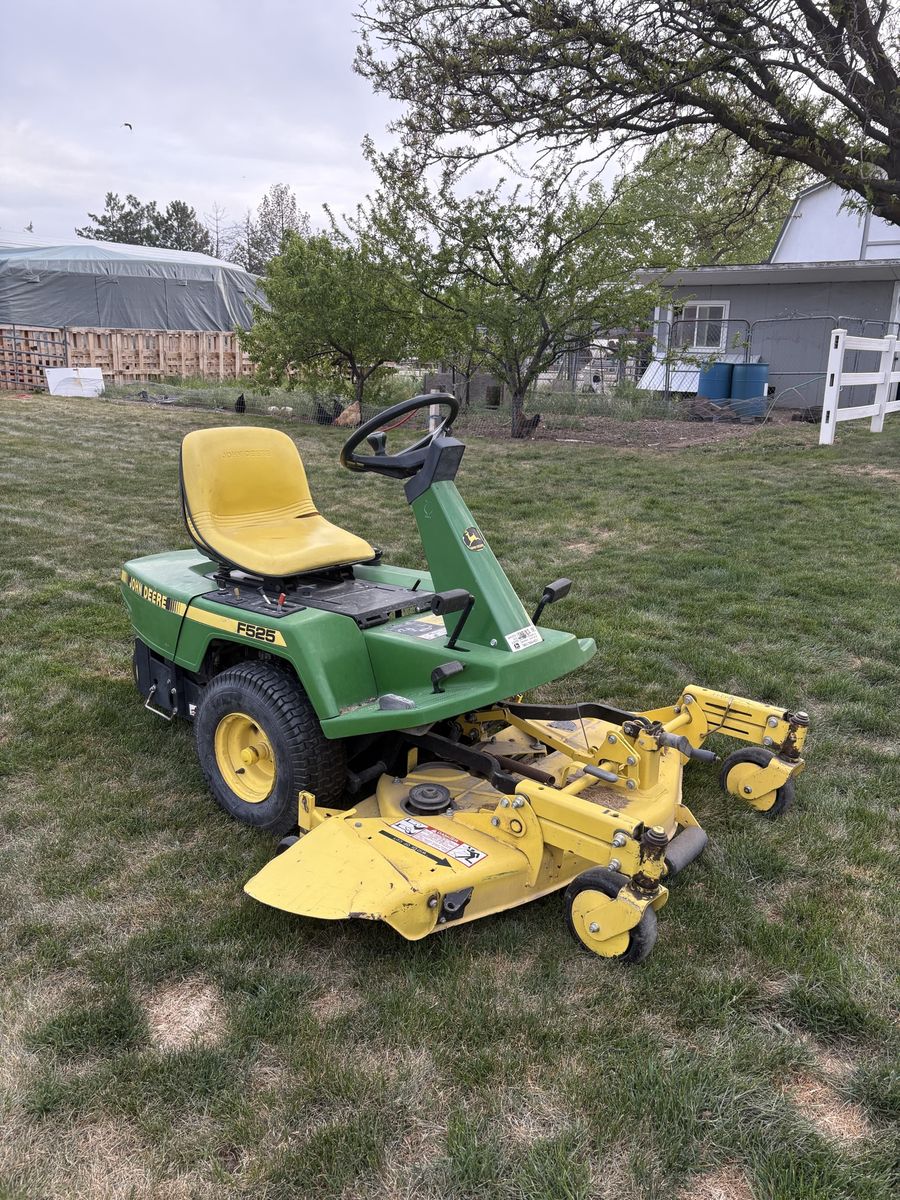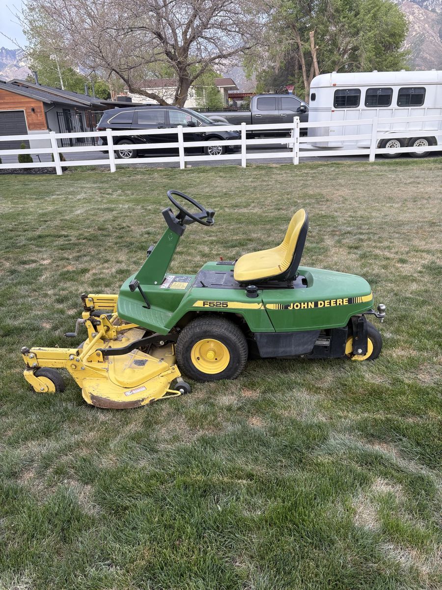 John Deere F525 zero turn mower. It runs and cuts great. It has a 48 inch deck and cuts amazingly especially since there are 3 blades! There is a small tear in the seat but other than that great condition! Just about 552 hours. Shoot me an offer!