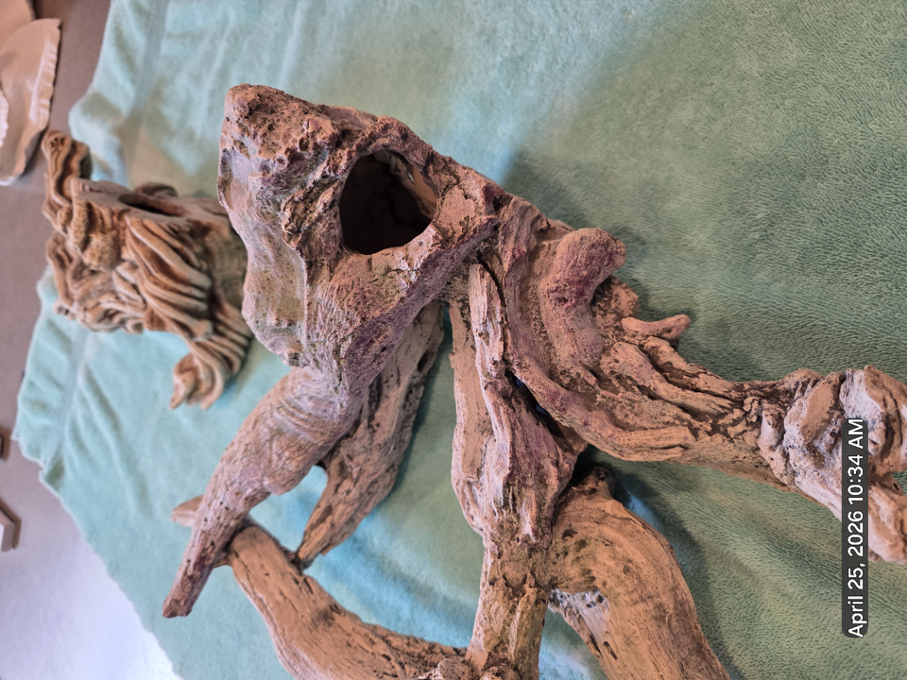 Here are 3 different sizes of aquarium artificial driftwood all in excellent condition. They are for larger aquariums (see pics). These will add a realistic scene to your underwater environment. Only used for a very short time. These 3 pcs. would sell for close to a hunder dollars in stores. Again.. they are large pcs. Selling them as a group. Cash only..