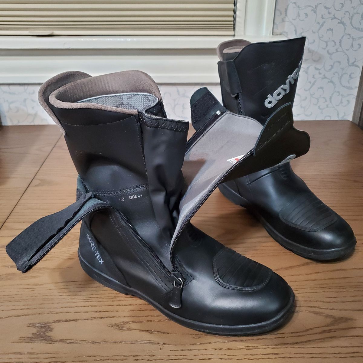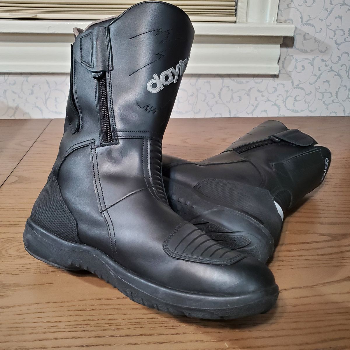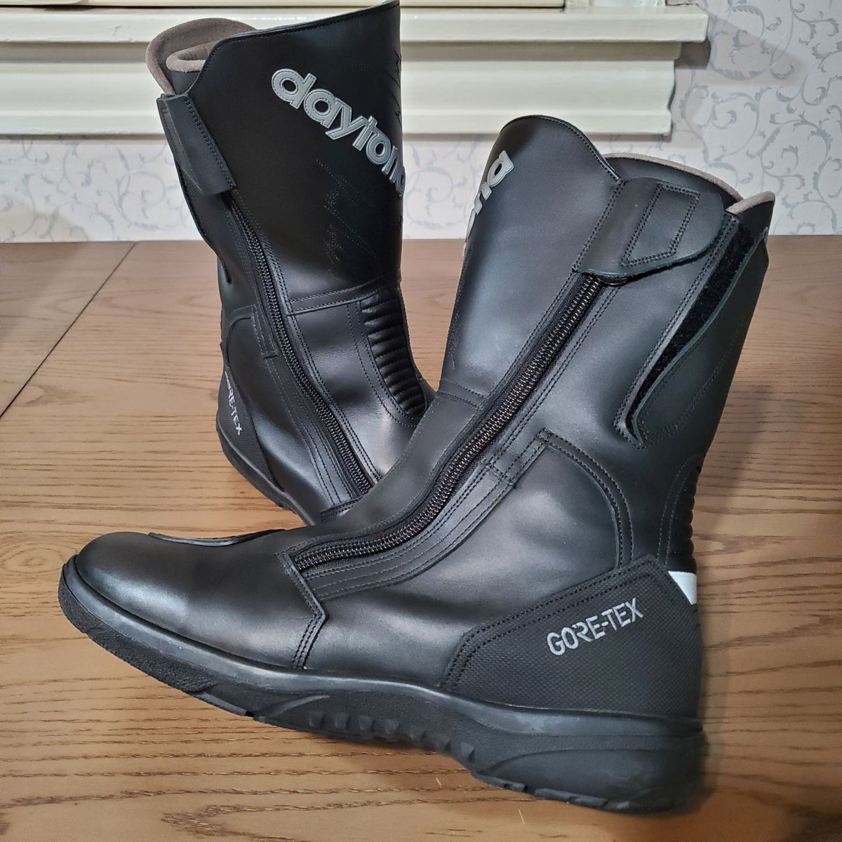 VenmoFull height street / cruising boot with full leather and GoreTex, super nice high quality boots. Hard to find in this condition outside of a retailer because they are comfortable, high quality and most people ride these for years and years. Ordered a few pairs of these to test fit, couldn't return because they wanted like $200 to ship back to germany. This pair I tried on and never rode, too big for me, I think this pair is around a US 13.5 - 14 and wide. Try before you buy of course, if you are a big fella looking for riding gear I have some other XXL+ size gear for sale in new or like-new shape and would be willing to bundle for you. Let me know if you have any questions / offers and thanks for looking!