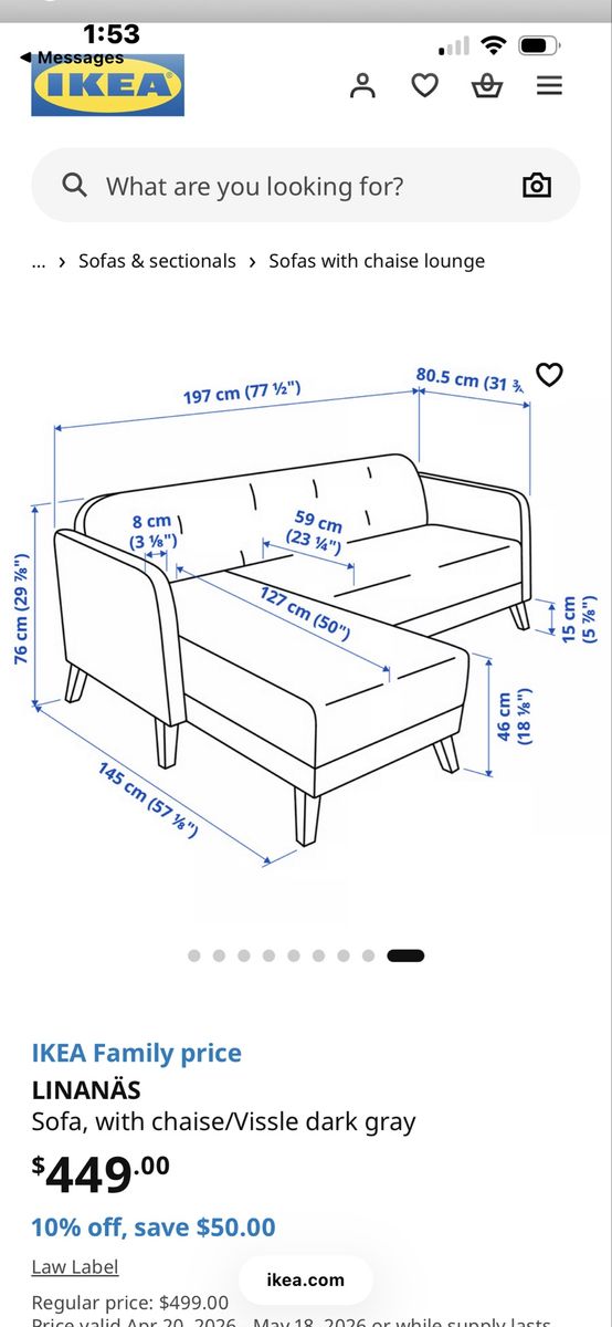 ZelleL couch good for small spaces Measurements in the pictures