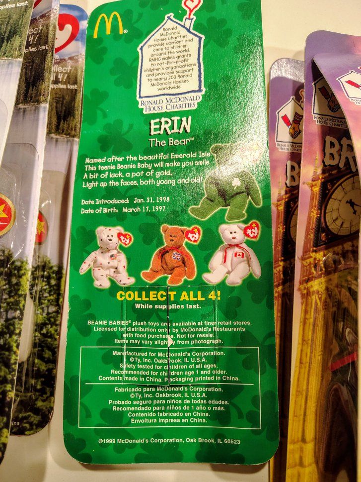 Set of 14 (some have multiples) for $100 located in Lehi Cash Only 1999 McDonald's Teenie Beanie Babies International Bears all with 1993 tush tag error. In original packaging