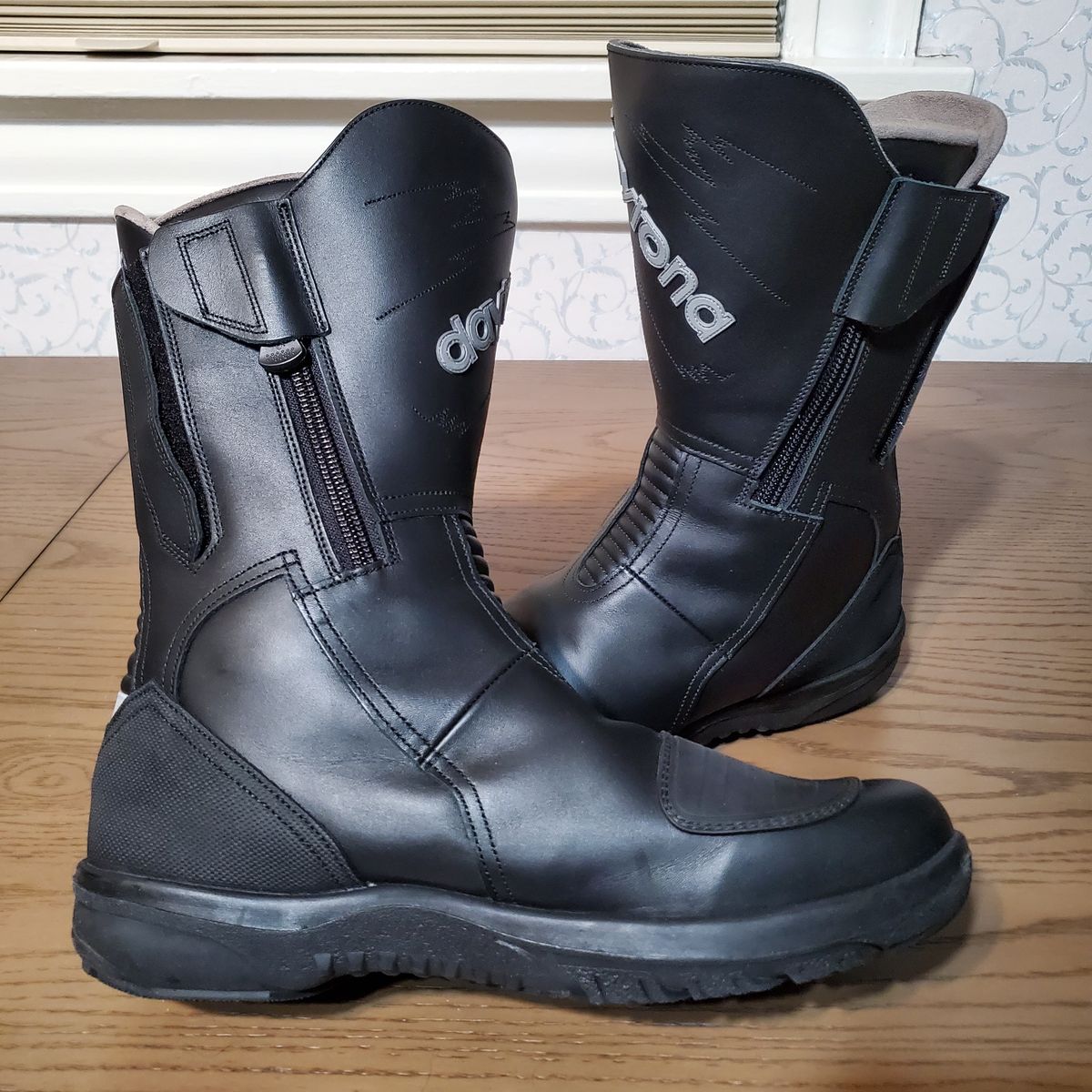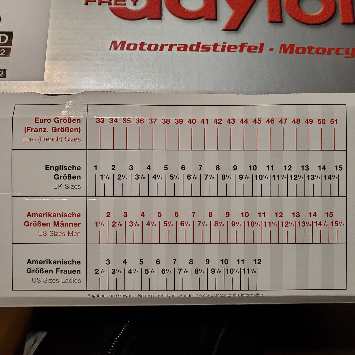 VenmoFull height street / cruising boot with full leather and GoreTex, super nice high quality boots. Hard to find in good condition because they are comfortable, high quality and most people ride these for years and years. Ordered a few pairs of these to test fit, couldn't return because they wanted like $200 to ship back to germany. This pair I tried on and rode once or twice but ultimately the toe box was a little tight for me so haven't used them since. Try before you buy of course, if you are a big fella looking for riding gear I have some other XXL+ size gear for sale in new or like-new shape and would be willing to bundle for you. Let me know if you have any questions / offers and thanks for looking!