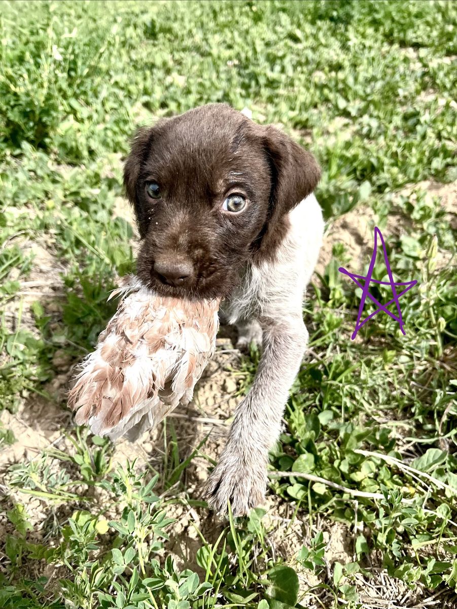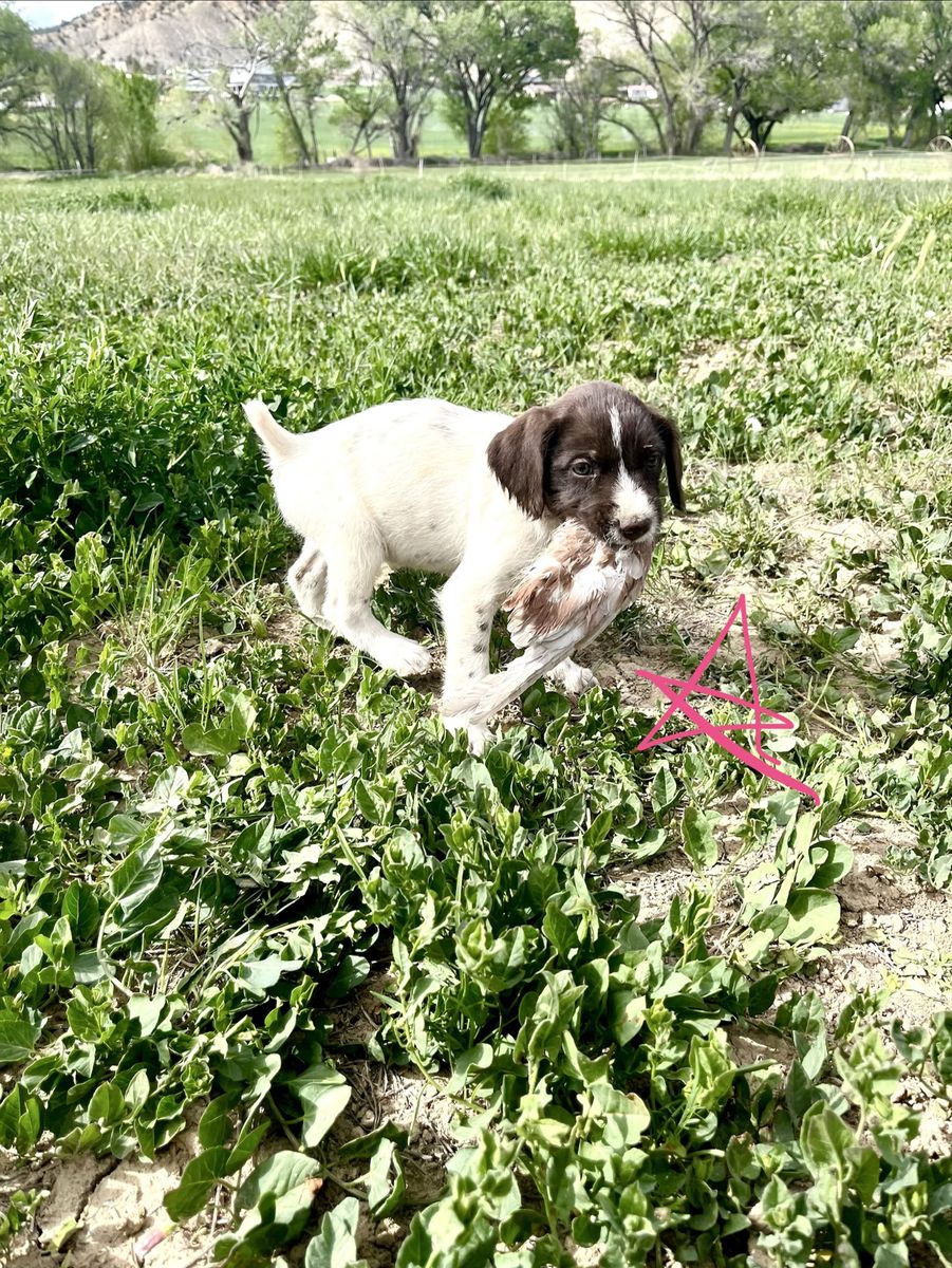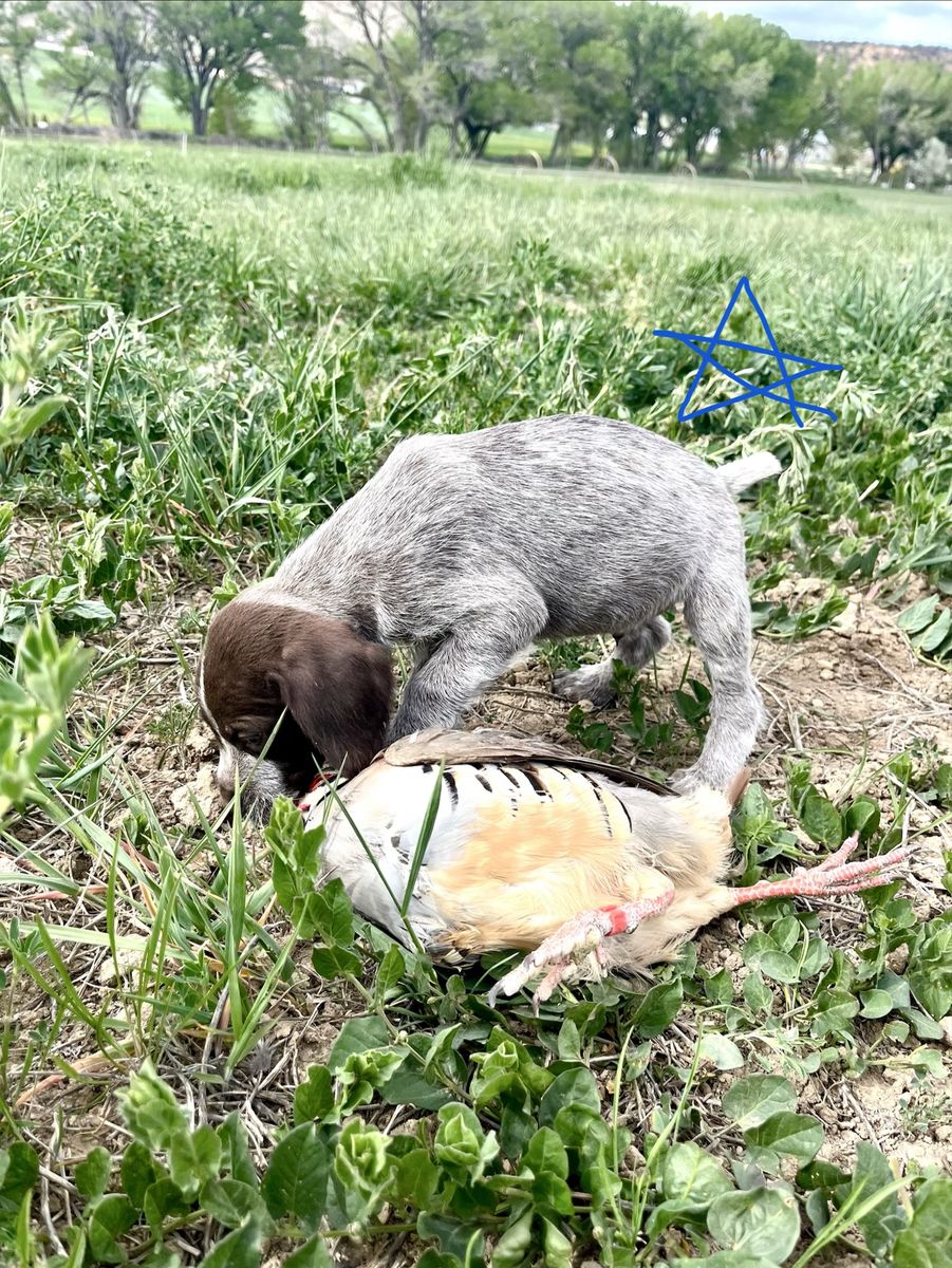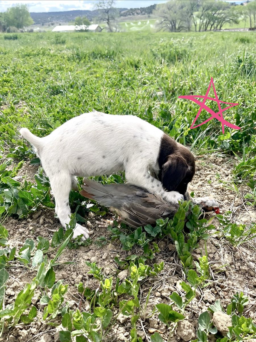 GWP female is sweet as they come and loves birds. She’s an amazing retriever and is already pointing birds just a few training sessions in. (For sale as well).