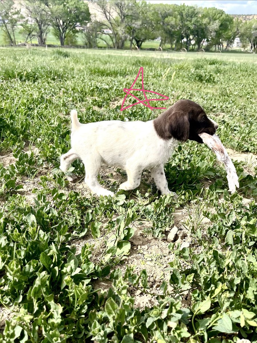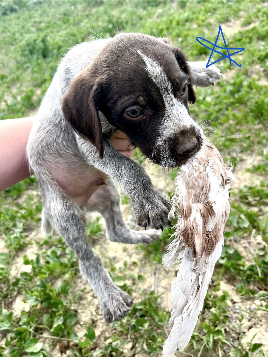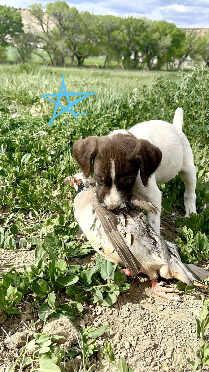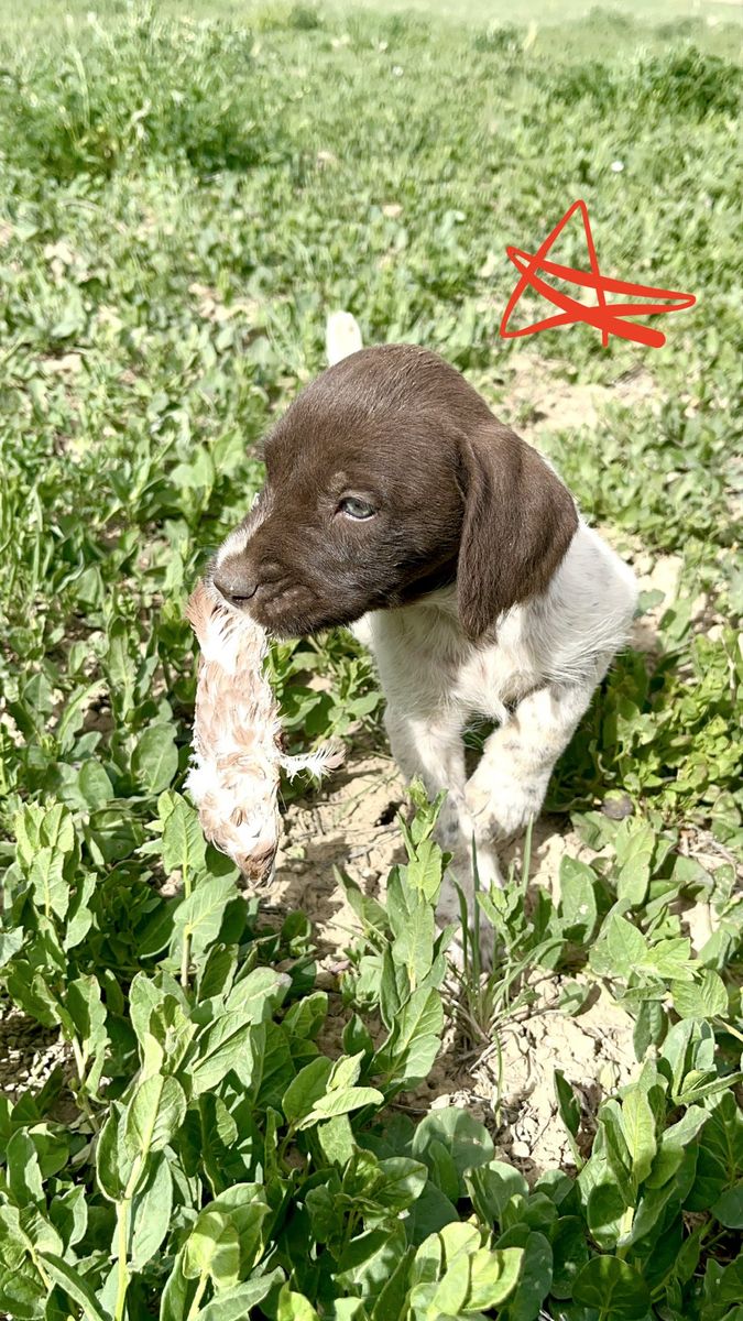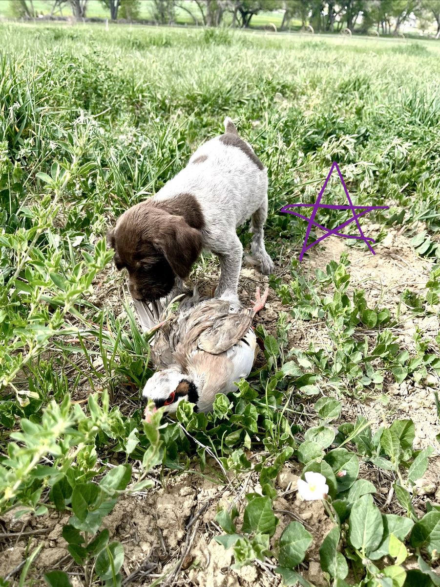 GWP female is sweet as they come and loves birds. She’s an amazing retriever and is already pointing birds just a few training sessions in. (For sale as well).