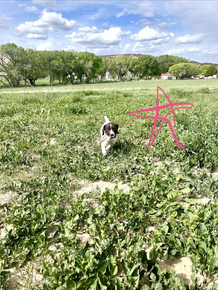 There are two males and three females in this litter. All are happy, healthy, friendly and BIRDY. If you’ve been looking for a hunting dog without the $800+ price tag, these pups are for you. They’re from proven parents and will be the perfect age to go hunt with you by this fall. If you are not a hunter, you need to be active for these dogs to be a good fit for you. These dogs get bored when kept inside all day. They are high energy and need daily exercise.