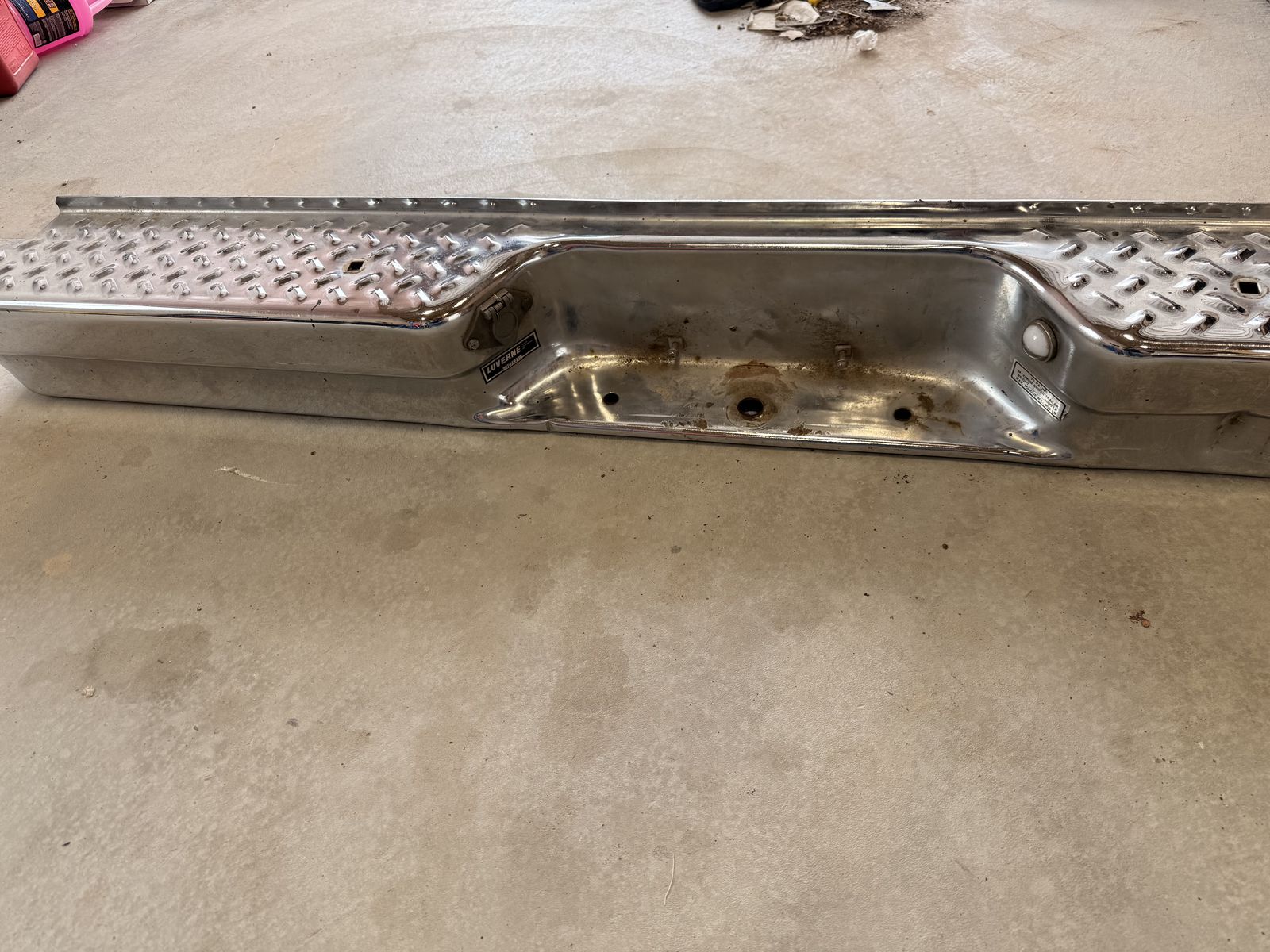 Diamond plate chrome rear bumper off a 1977 f150 with mounting brackets. It won't fit my project come get it thanks.
