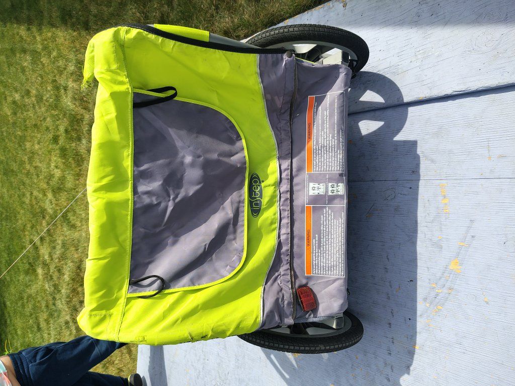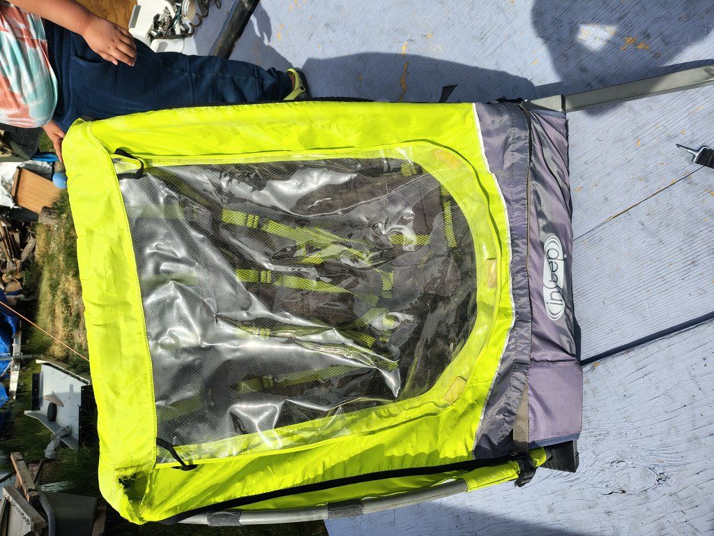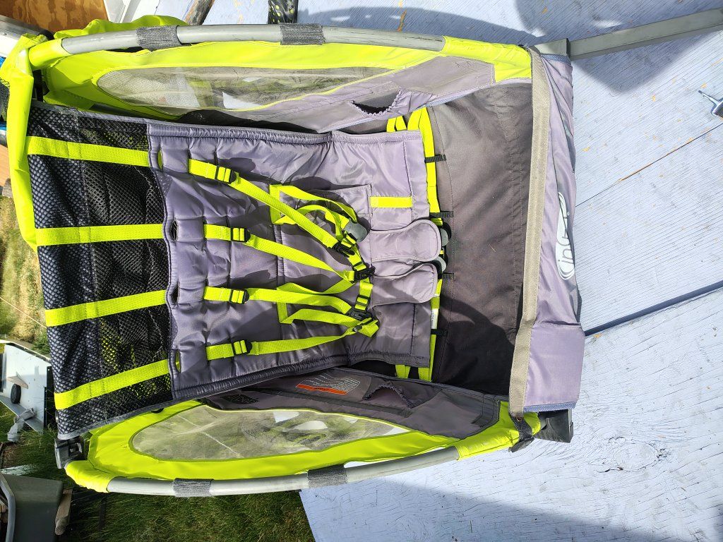 Instep 2 child bike carrier, two children up to 90 pounds total, mounts to rear axle of the bike via trailer hitch coupler, good condition, has one tear by the top seam, photo included, $70 cash. call or text 801-403-5538