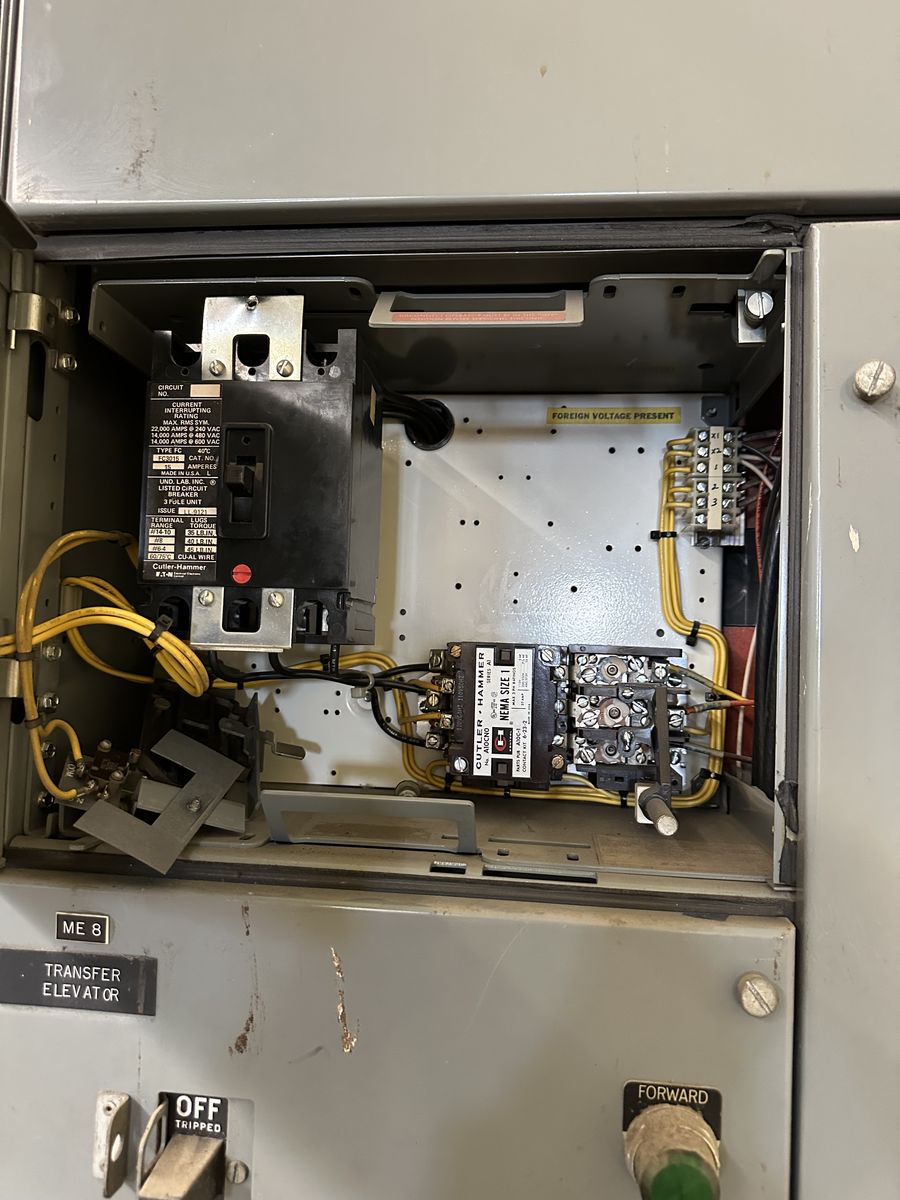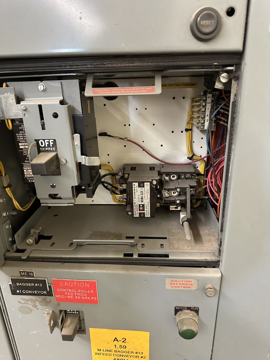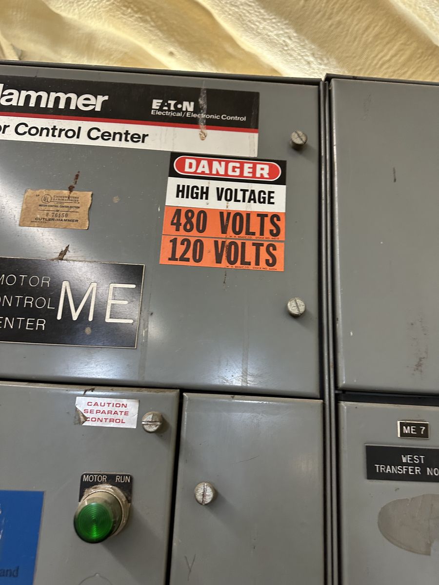 Cuttler-Hammer motor control center. Two sections. There is another full section behind the one show in the photo. Each bucket contains a braker and a magnetic starter.