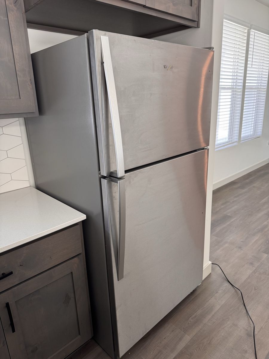 VenmoWhirlpool fridge 33 in. 20.5 cu. ft. Wide Top Freezer Refrigerator in Monochromatic Stainless Steel