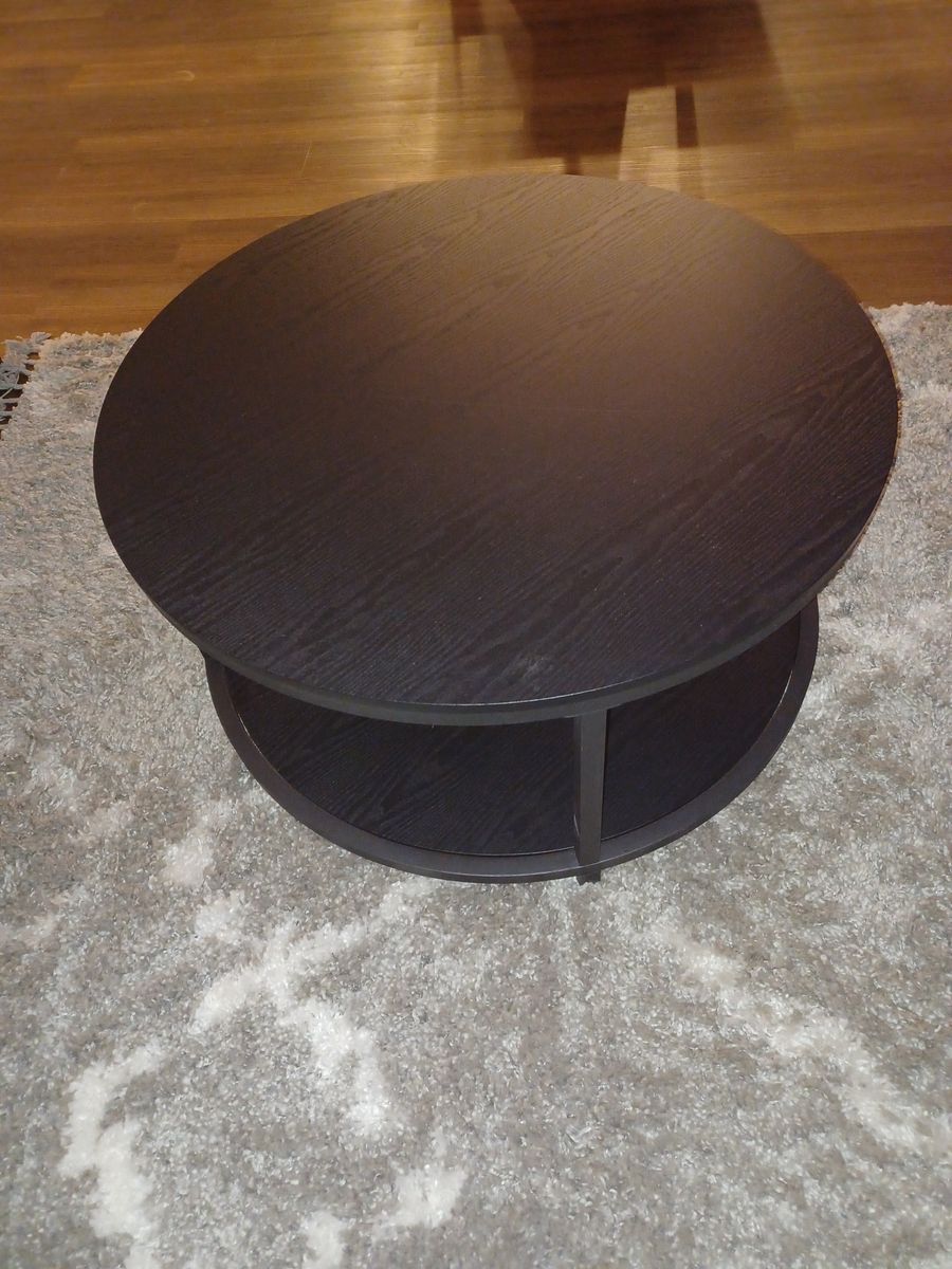 Round Coffee Table Black 35.8" Circle Coffee Tables for Living Room Rustic Industrial Design with Sturdy Frame and Legs Robust and Durable–
