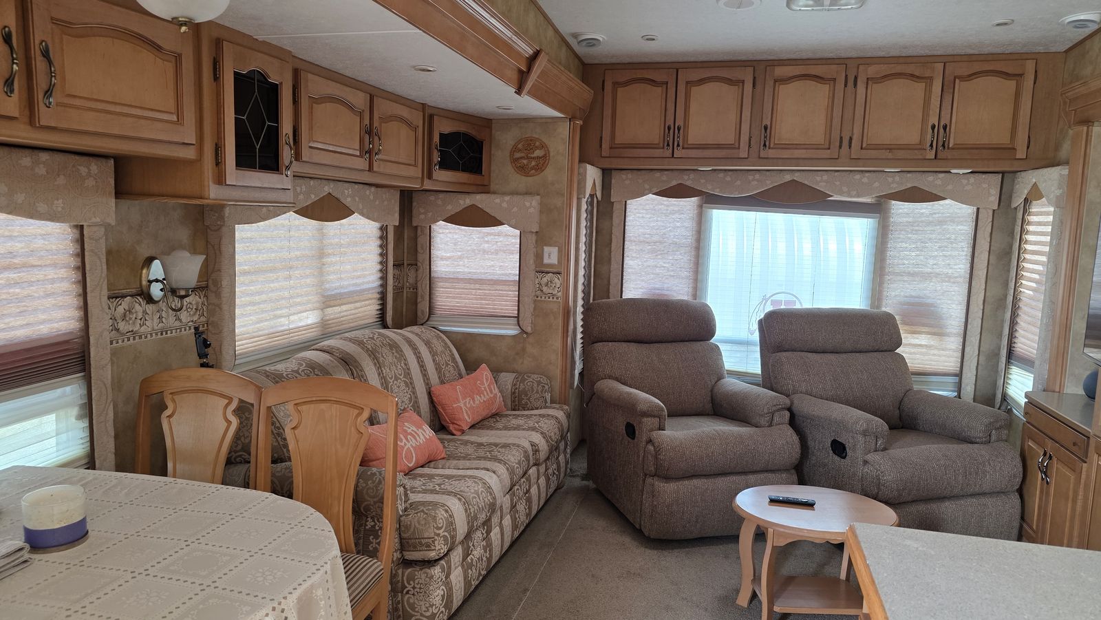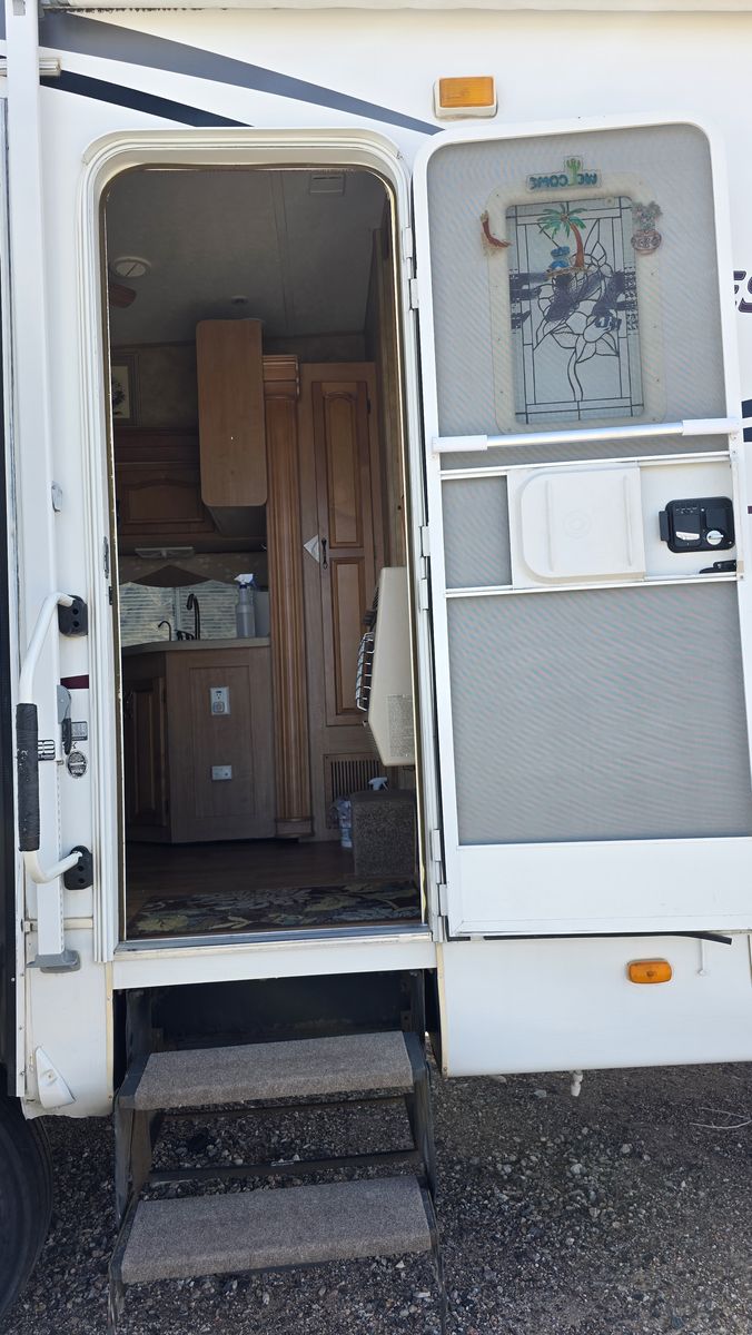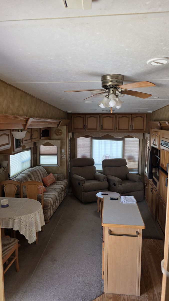 You will not find a 2006 5th Wheel trailer in such a great shape. Newer tires, clean, roof treated in the last two years. Comes with a skirt for storage and a cover. Trailer is in Littlefield Arizona. King size bed, two recliner chairs, New TV. Three slides, AC, heatrer, sofa bed. Lenght 37', Price to sell at $14,500. Call Doug 801 635 9584 or Olga 801 809 0544.