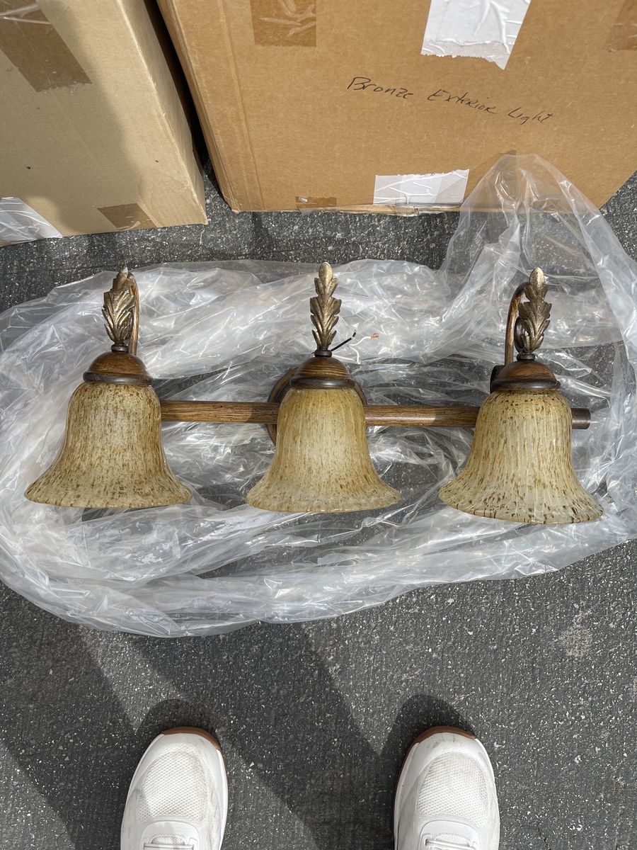 I have two of the copper colored lighting fixtures, and six of the black. Selling for $60 each or $350 for all.