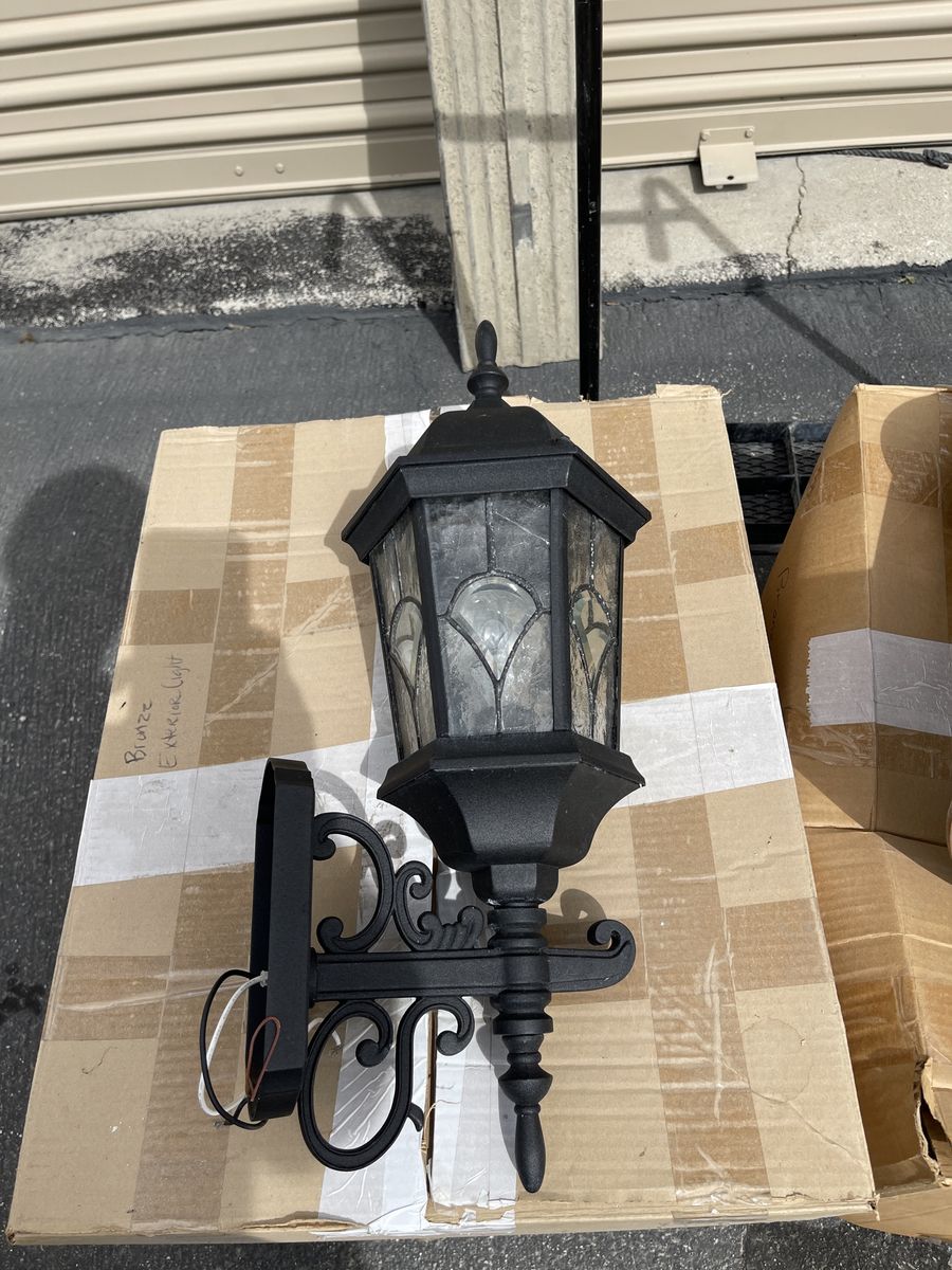 ZelleSelling 3 quality outdoor lighting fixtures in excellent condition. Perfect for patios, entryways, and exterior walls.