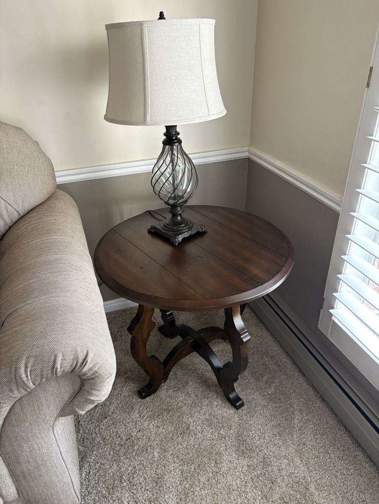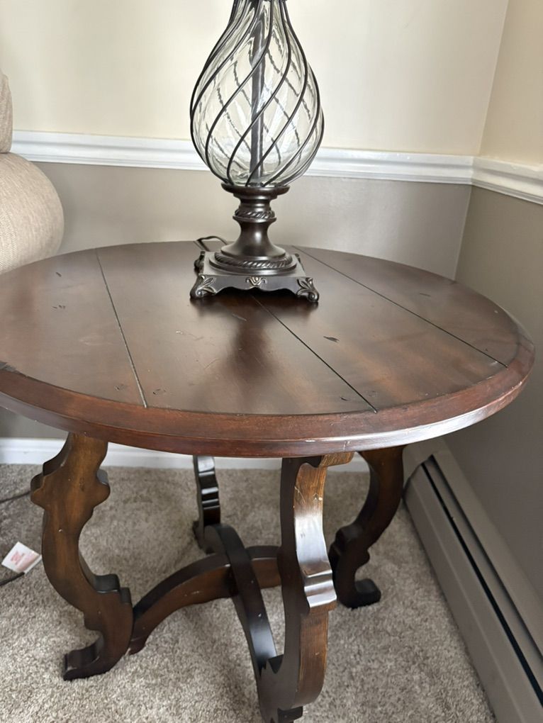 ApplePayThese 2 round end tables have been in our living room. We are moving. They are clean and ready for their next home. 28” wide by 26” tall Both tables and both lamps for $75 total