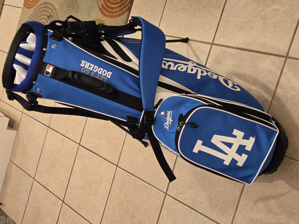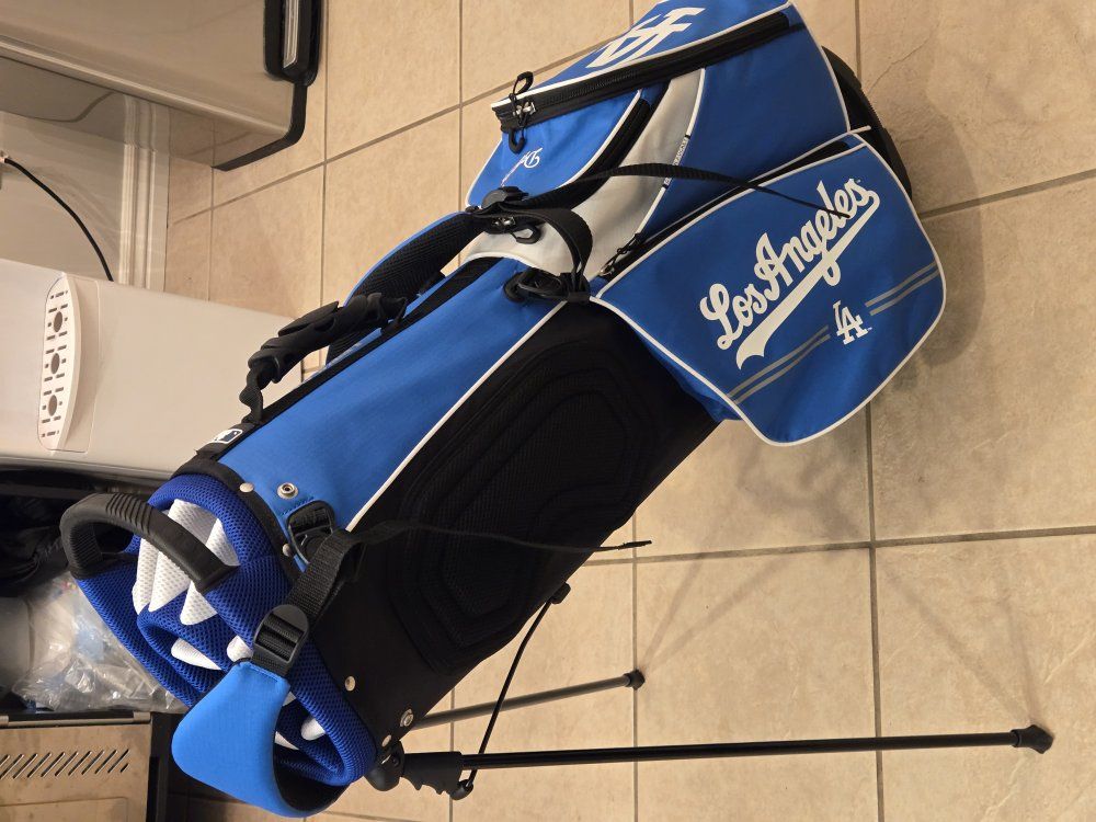 Los Angeles Dodgers caddie carry golf bag. 14 way divider, 7 pockets, adjustable shoulder straps, velcro glove holder, large towel ring and rain cover. Bought it brand new last year, my kids got me a new cart so I don't use it any more. Still in new condition. I paid over $250, but Ill let it go for $200 obo. Text is best.