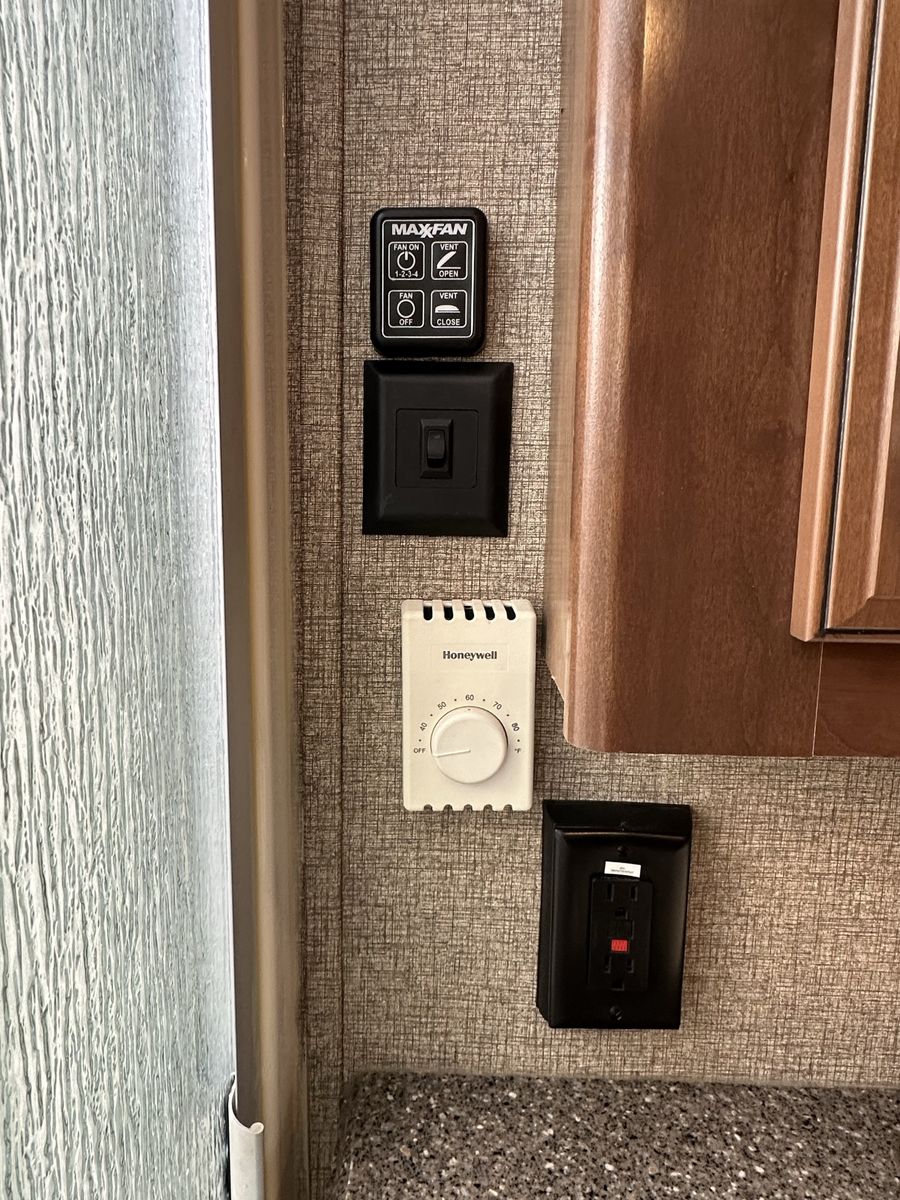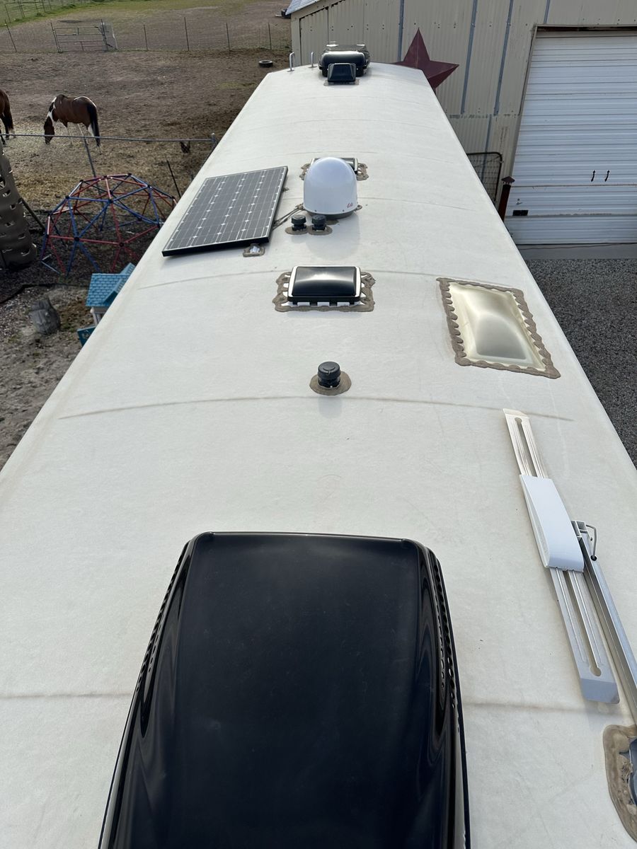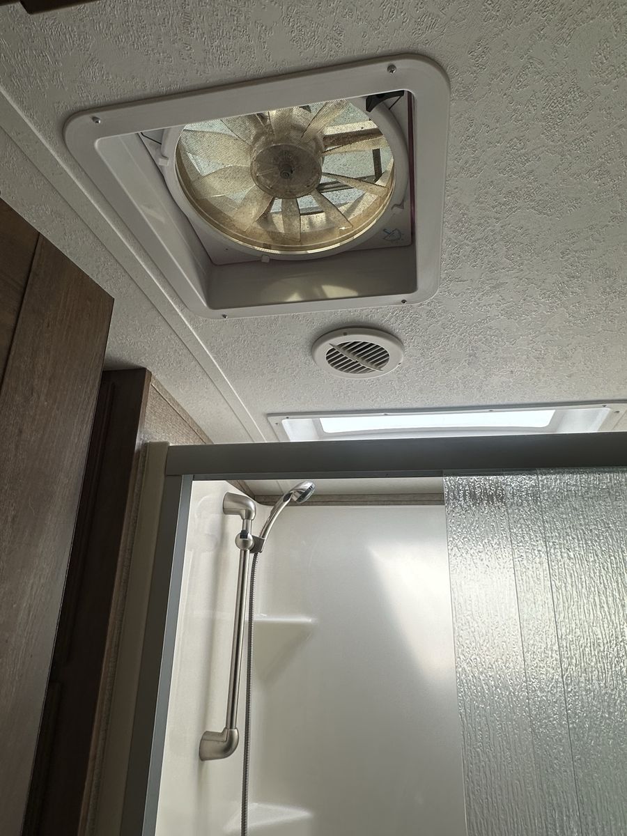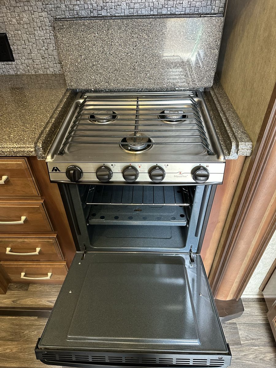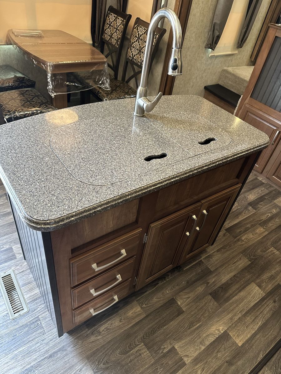 Features: •Air conditioning and heating- 15,000 BTU Central/Ducted, furnace heating •Appliances- Intervac central vacuum system with attachments included, refrigerator 4dr, microwave(convection)/hood combo, water heater 10gal gas/elec, washer and dryer hookups. •Entertainment- 2 flat screen TV’s with travel straps, Radio/CD/DVD player, Dish satellite, satellite with auto seek, exterior stereo speakers, in underbelly compartments there are outlets to plug in for TV or other equipment, satelite and cable hookups in underbelly compartment. •Jacks and leveling system- hydraulic leveling jacks. •Misc. Equipment- Fireplace, ceiling fan, flood light, LED ceiling lighting, backup camera, 1 skylight, 2 power roof vent with rain and wind sensors, 1 manual roof vent, spare tire and carrier, slide out tray full pass through, glass shower enclosure, 2 couch bed pullouts, 2 under bed storage (queen size bed), newly replaced fire alarm, touch screen control panel, incommand control systems, all window blinds come with shade and black out curtains, exterior lighting in front, tires in great condition, mirrored sliding barn doors in bedroom for closet, heated flooring in bathroom, pull down stainless steal kitchen faucet, CO2 detector. •10-11.5' awning •Cabinet upgrade DELUXE •Aluminum wheels •Solar panel •Power slide outs- 1 bedroom, 2 kitchen, 2 living room. Newly replaced slide out gear box for living room. •Also included- fifth wheel hitch attachment, dining table covers, couch covers, spice rack installed on wall in kitchen, 4 dining chairs (2 are collapsable), expandable dining table, water hose, power adapter, two large propane tanks, sewer hose, all manuals and remotes, cup holders on walls next to couches.