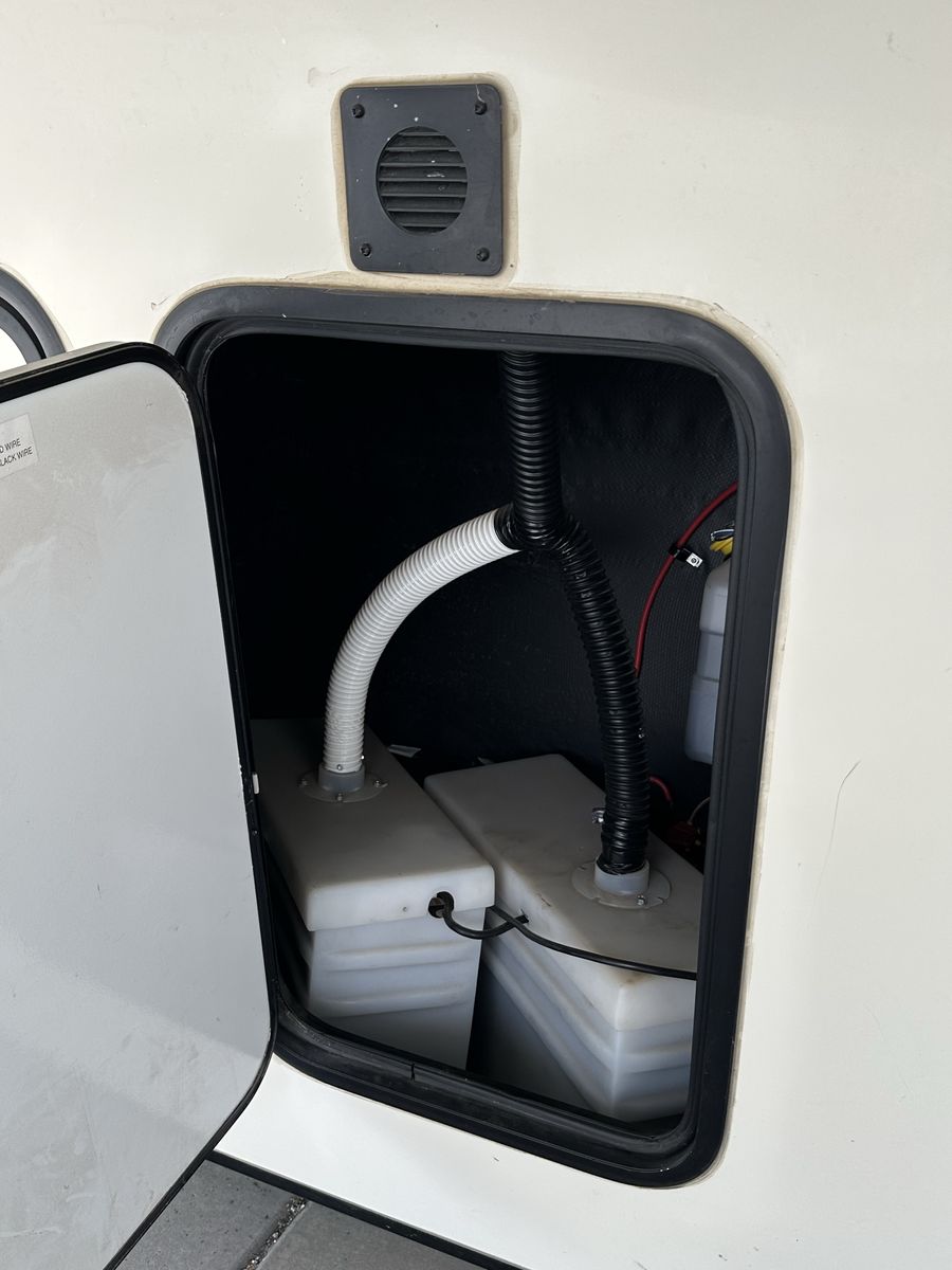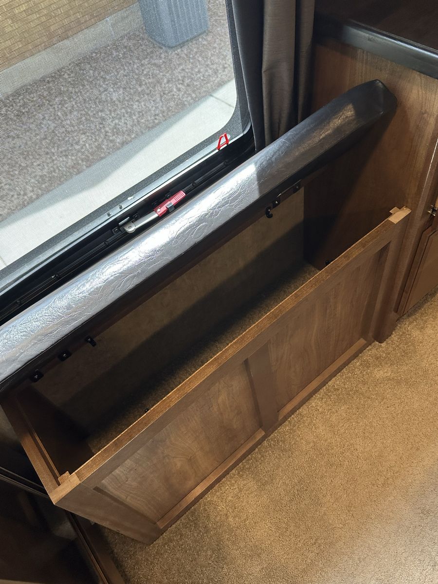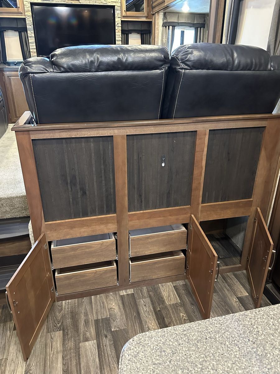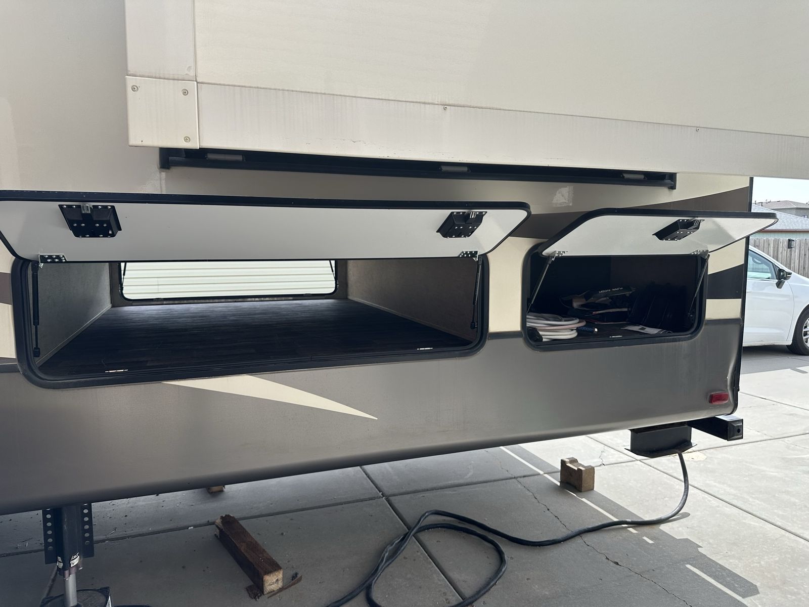 Tons of storage inside the trailer and huge outside compartments that can store large Costco tubs two high. Heated underbelly compartments with lighting in each one.