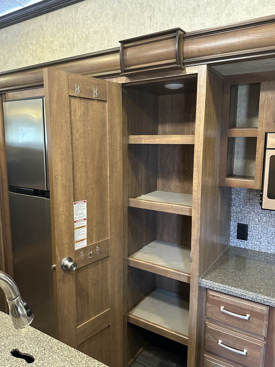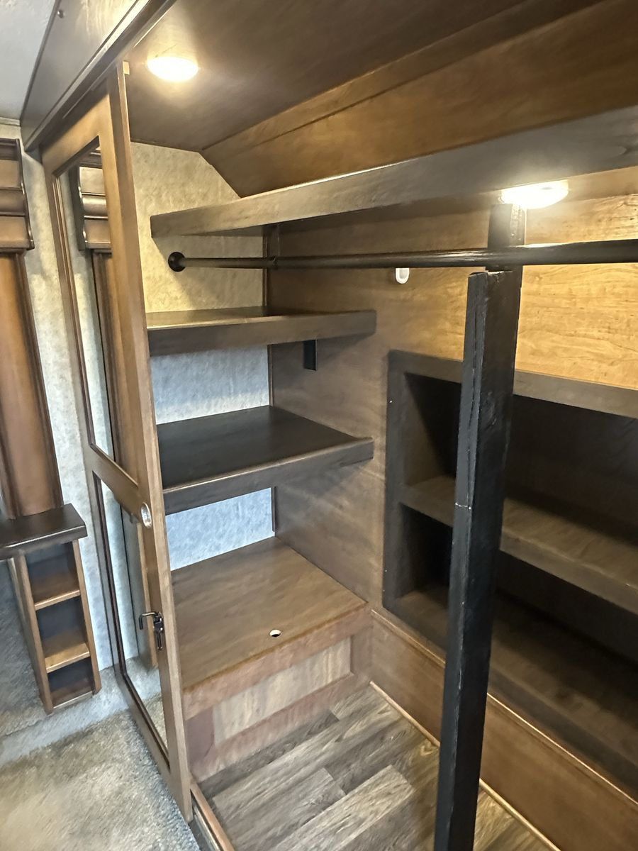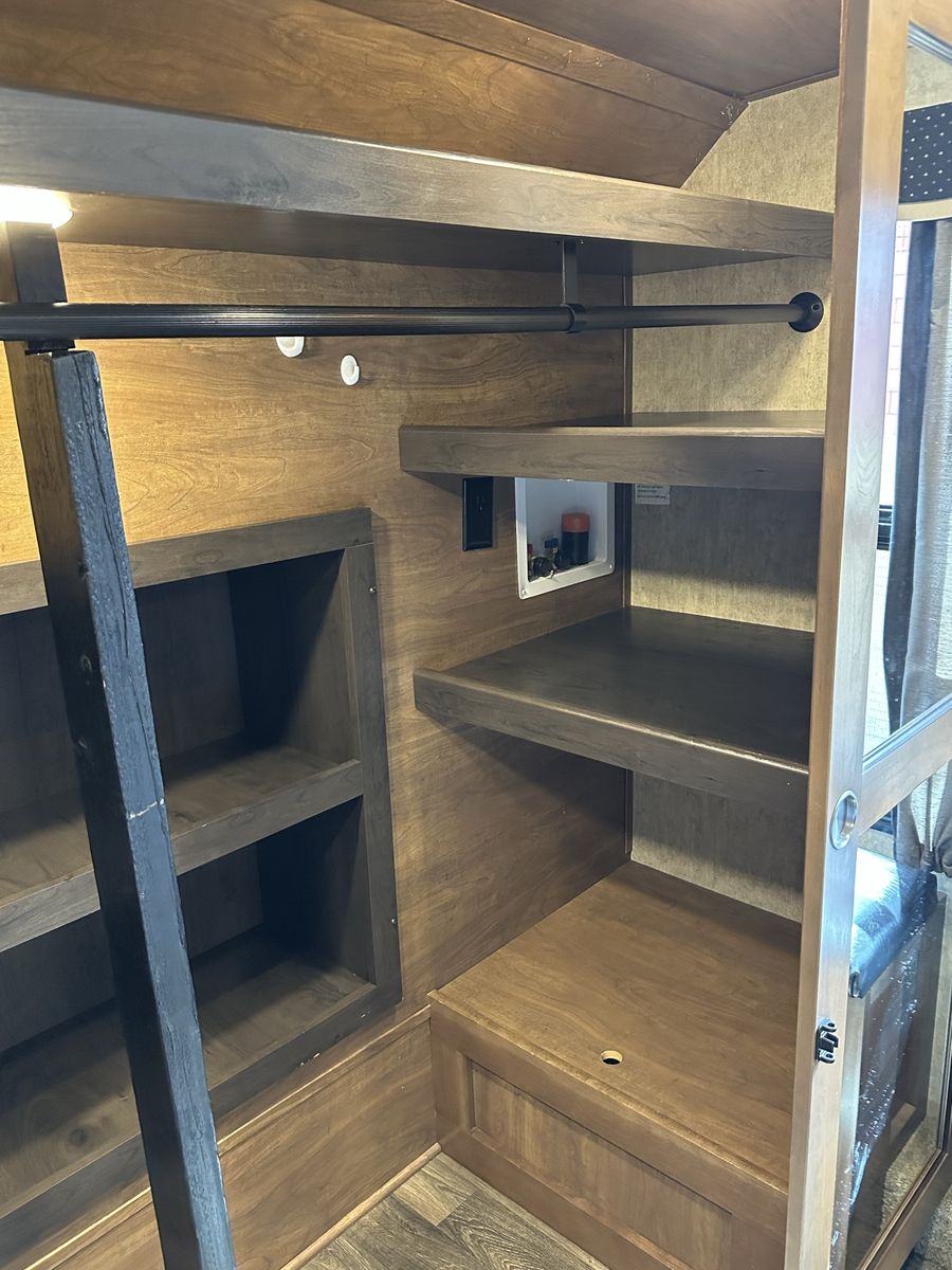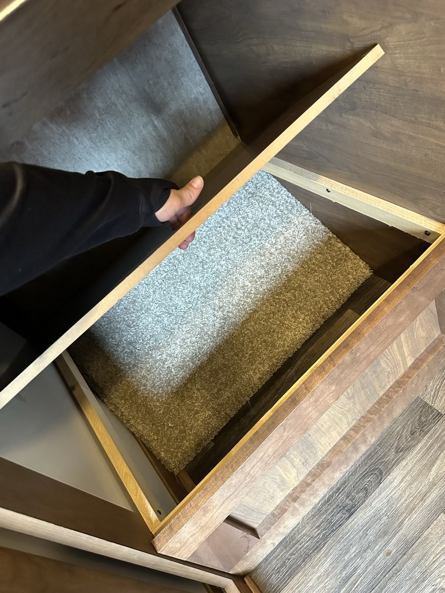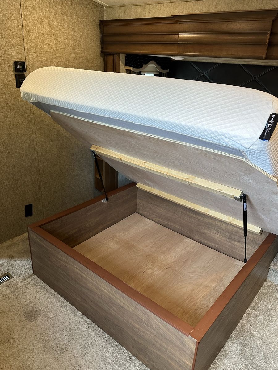 Tons of storage inside the trailer and huge outside compartments that can store large Costco tubs two high. Heated underbelly compartments with lighting in each one.