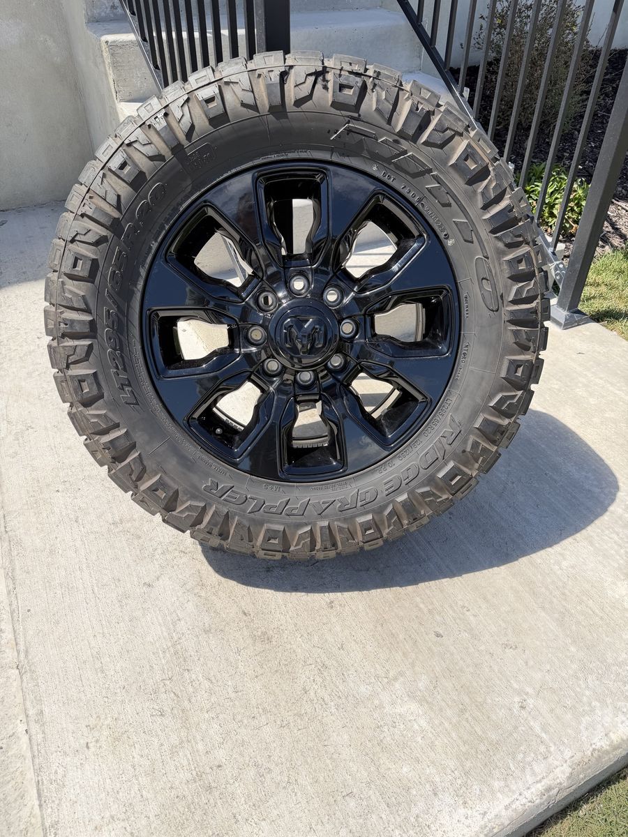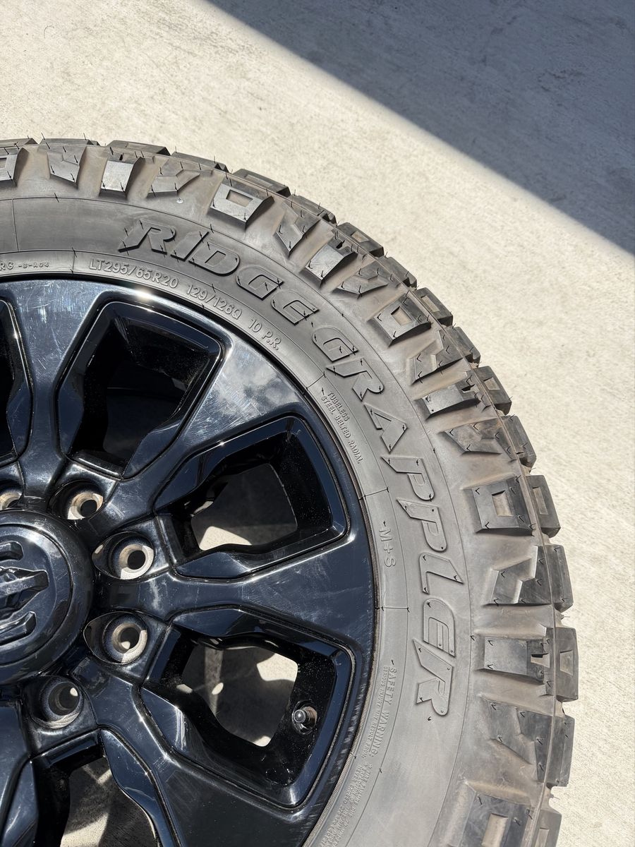 ApplePaySet of 4-Dodge Ram 3500 Limited Rims and Tires 295/65R20 Nitto Ridge Grappler Load E Almost new in excellent condition asking $3000 obo They have 5000 miles on them Rims have only 400 miles I can sell the rims or tires separately Comes with lug nuts Bolt pattern 8-6.5 Text anytime 385-402-2292
