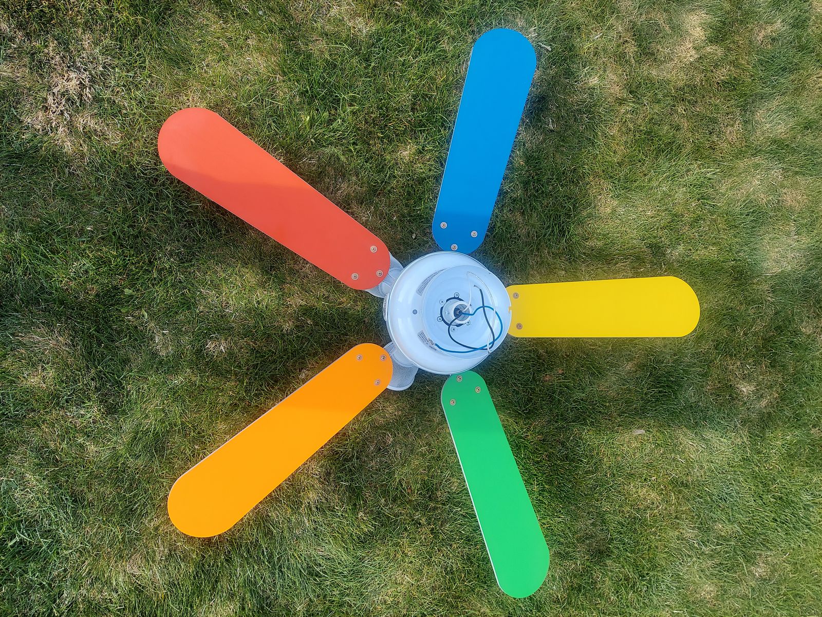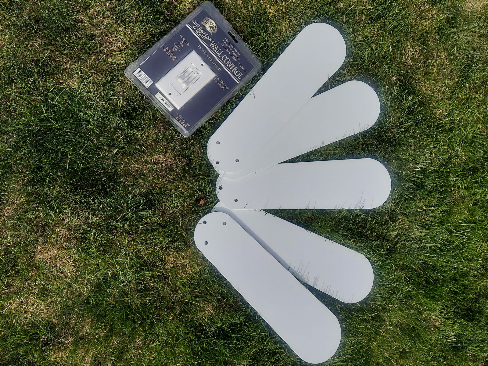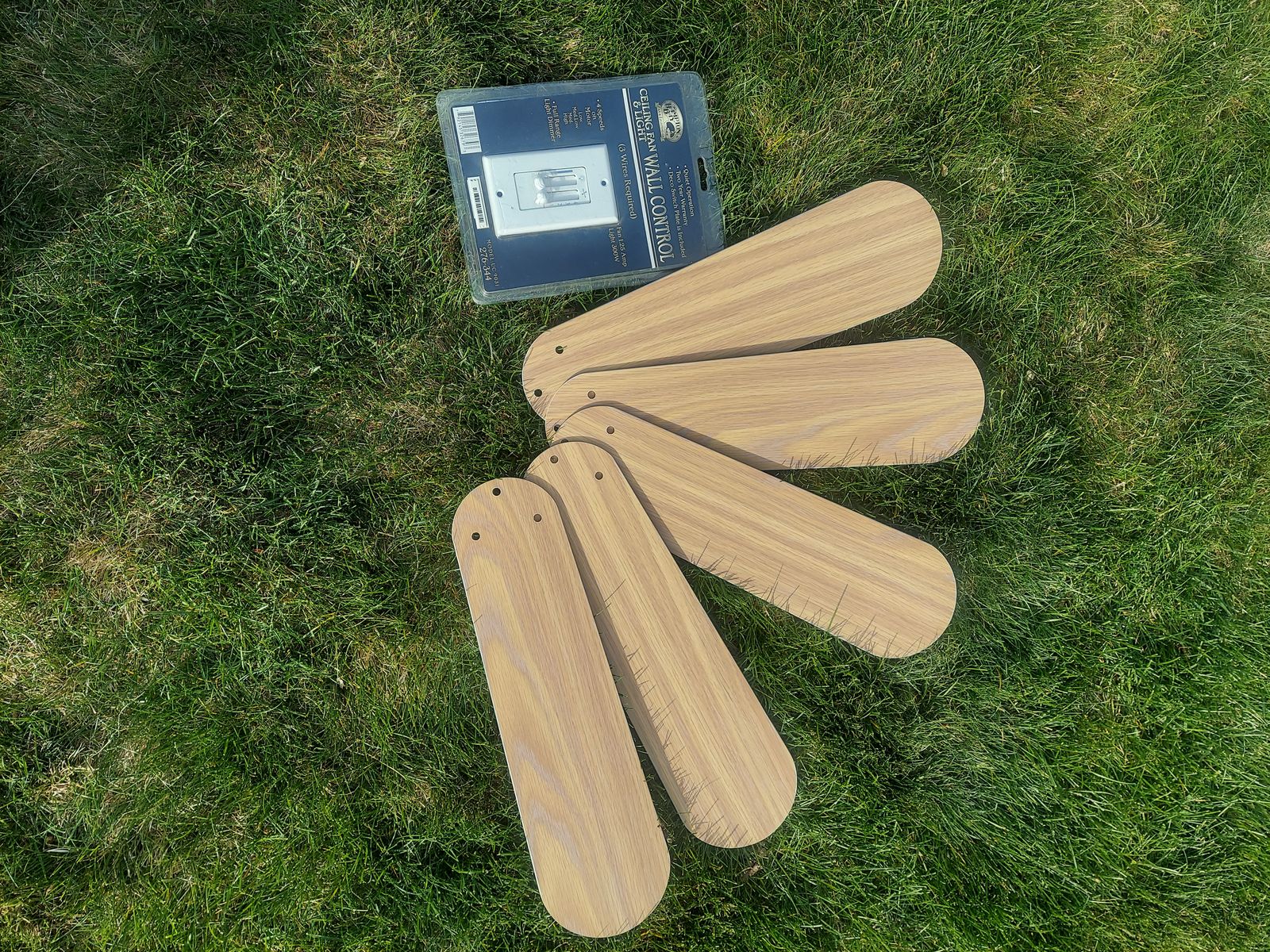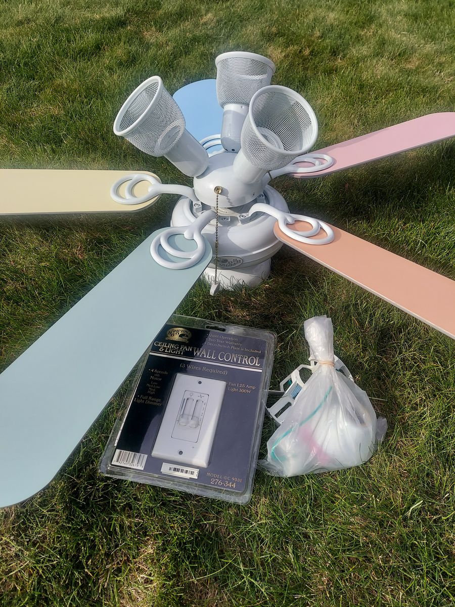 45" blade length ceiling fan with 4 different blade color options. Controller included. Brand new, never installed.