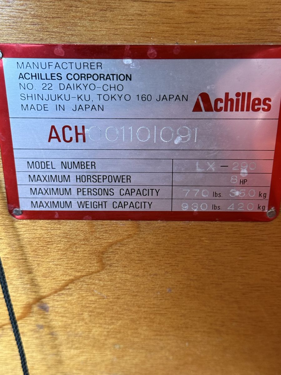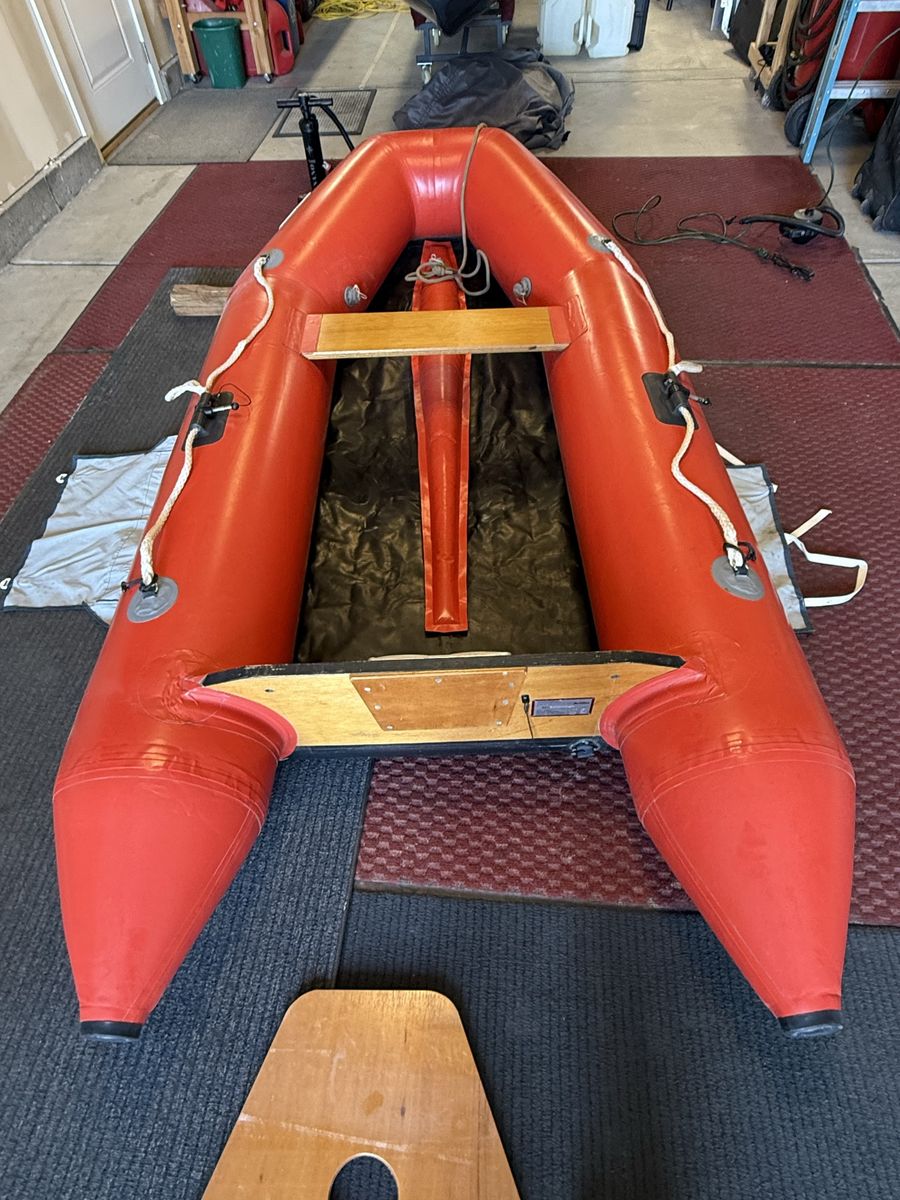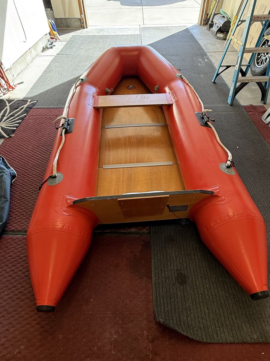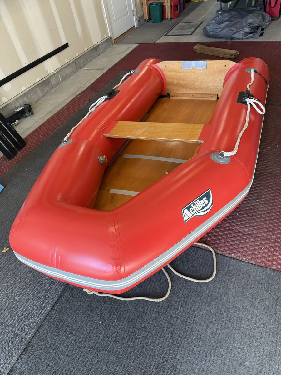 ApplePayAchilles Raft 9.5ft. This is in great shape for its age. Has a 4 piece wood floor and a wood transom. This has never had a motor of any kind mounted to the transom. It was used as a dinghy for a sailboat and only rowed.
