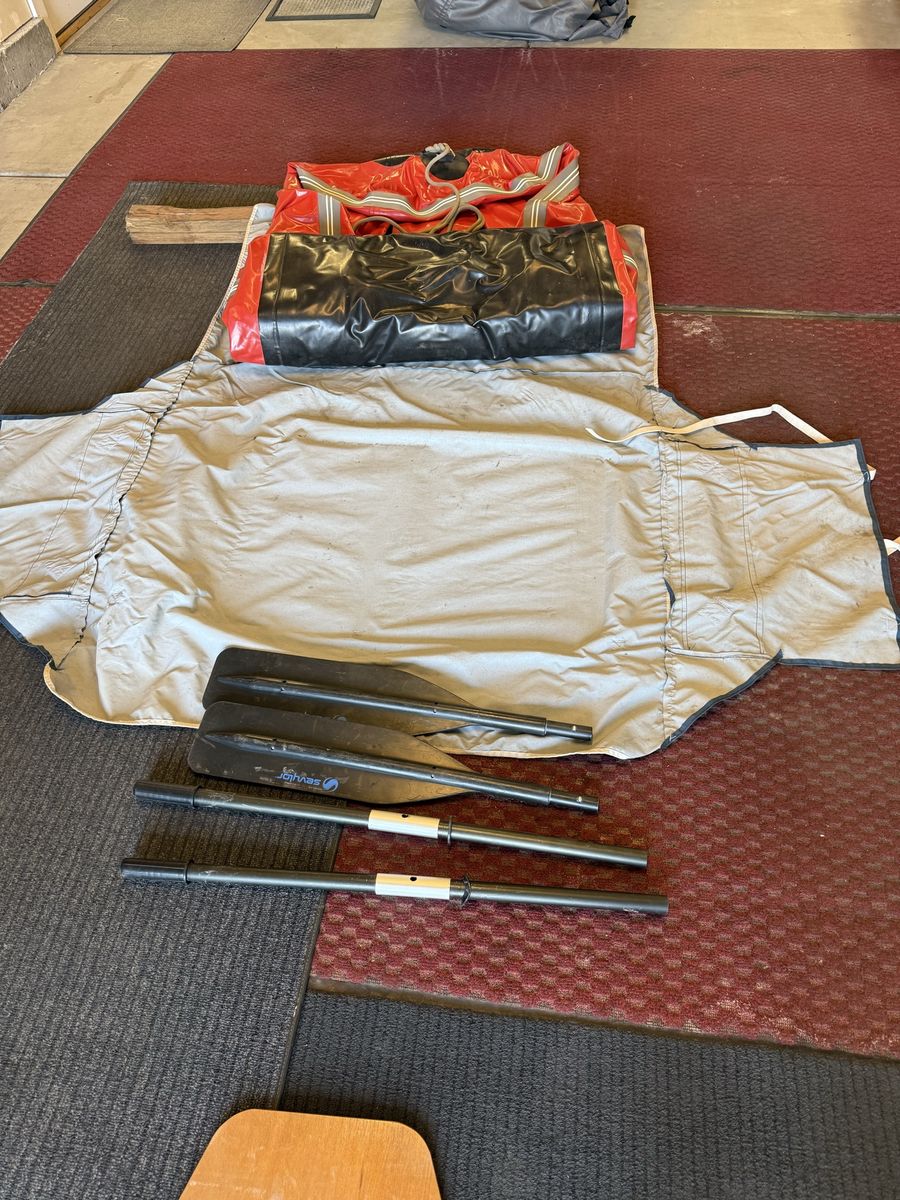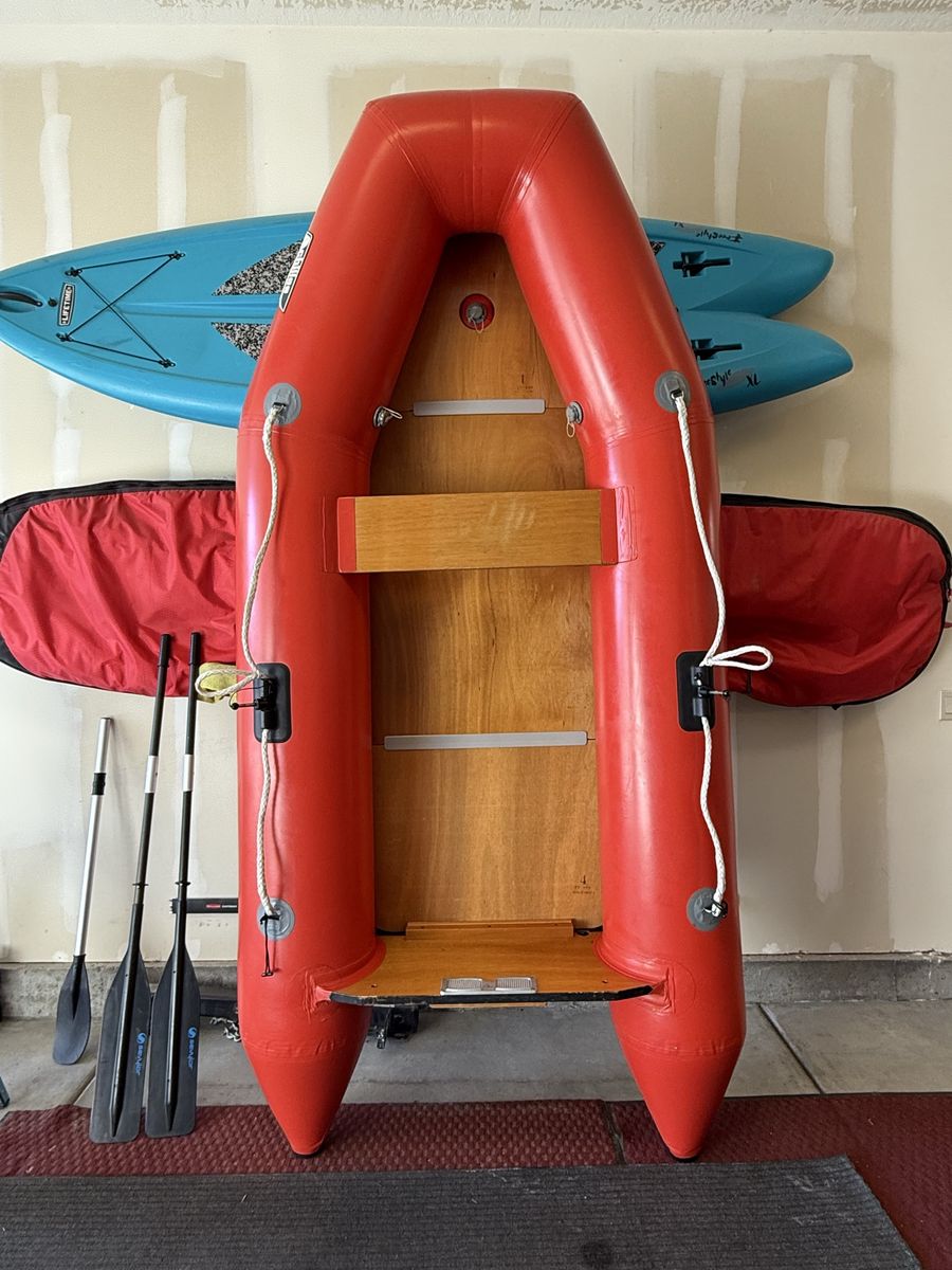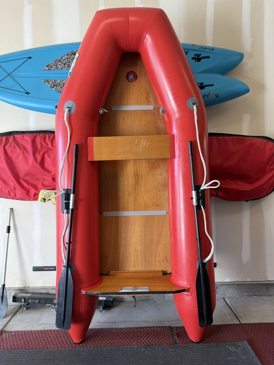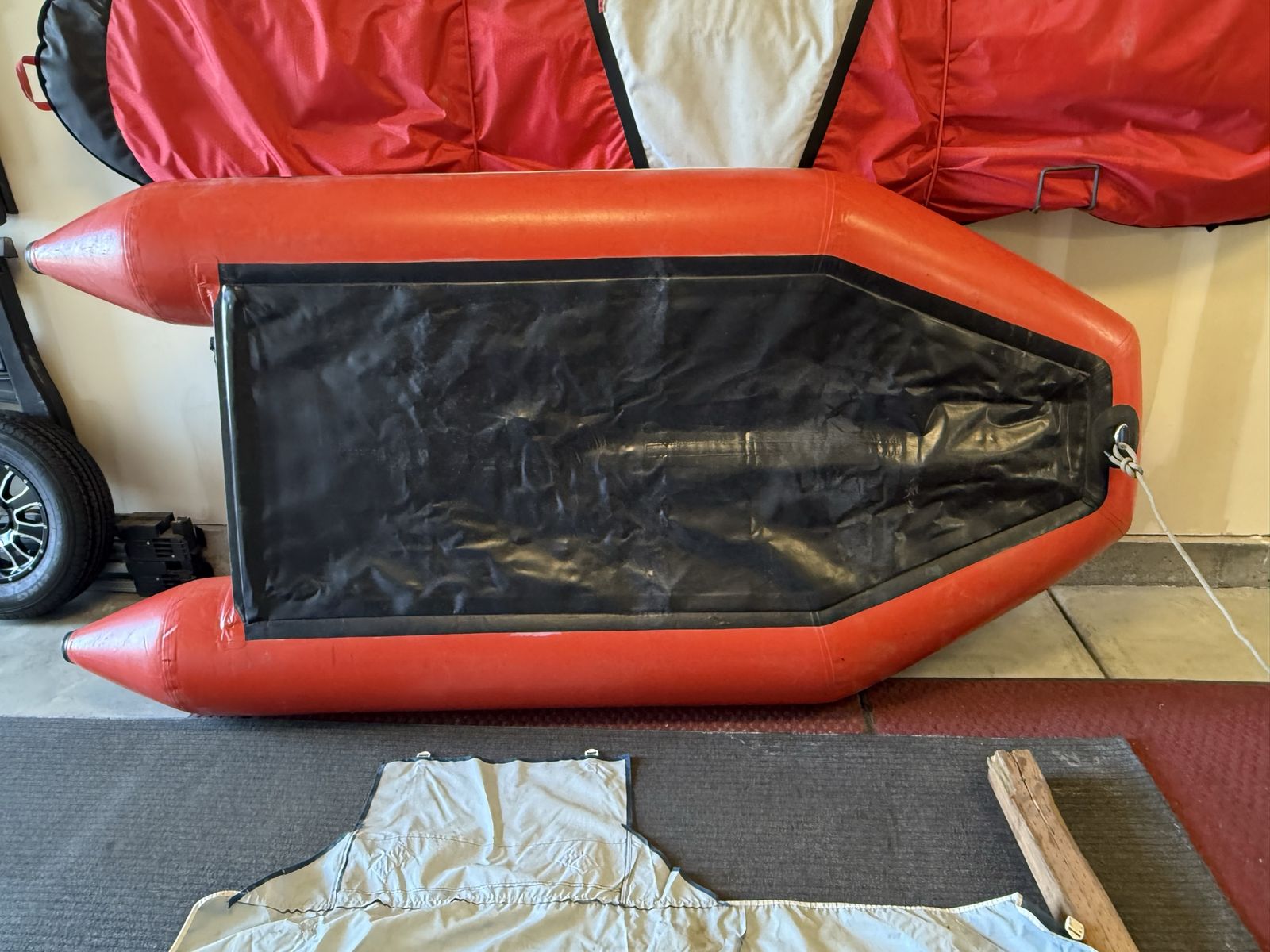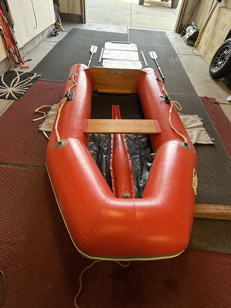 The center inflatable chamber for the floor seems to have developed a pin hole leak over the winter when it was stored. The leak should be a minimal repair. The two main chambers hold air just fine. Pretty cool lil raft if you’re looking for something like this.