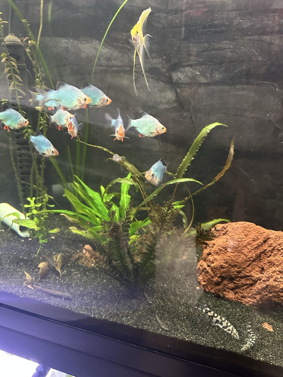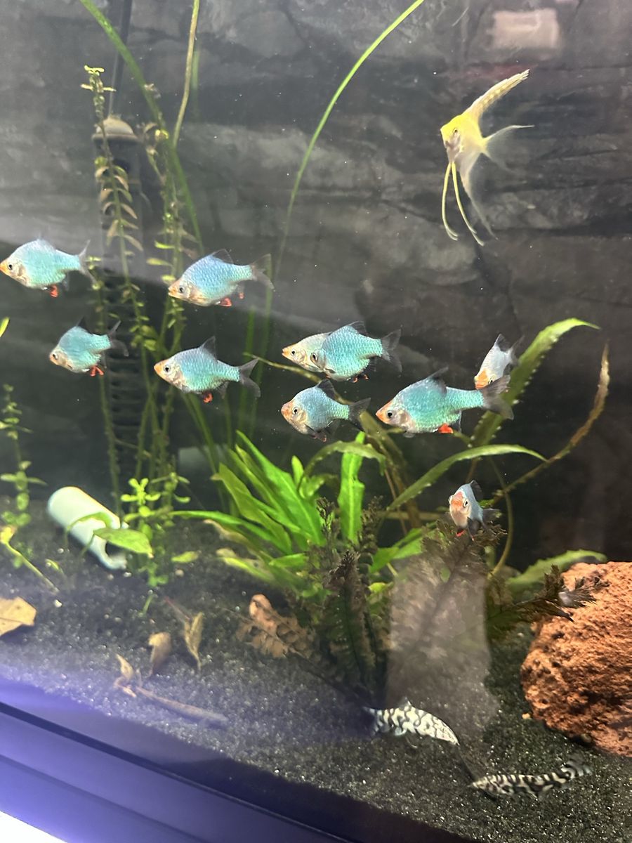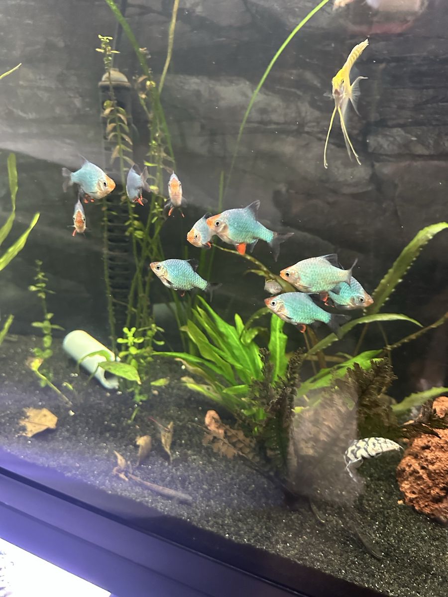 I am selling my rainbow tetras. I have 10 of these fish and they are very nice and well taken care of. If you are interested text me first thanks