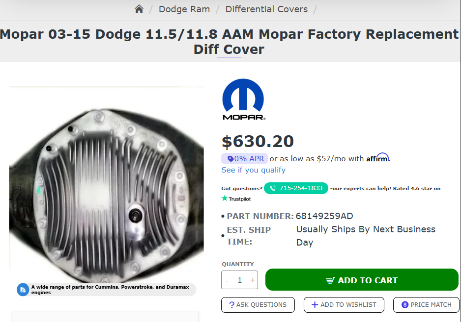 Mopar 03-15 Dodge 11.5/11.8 AAM Factory Differentail stock cover removed from a 2012 RAM. With bolts. Same as screenshotted page.