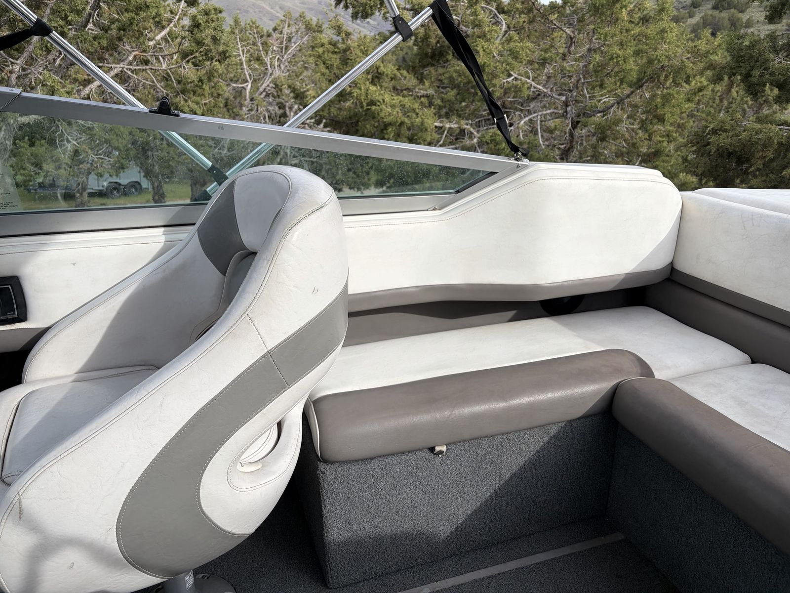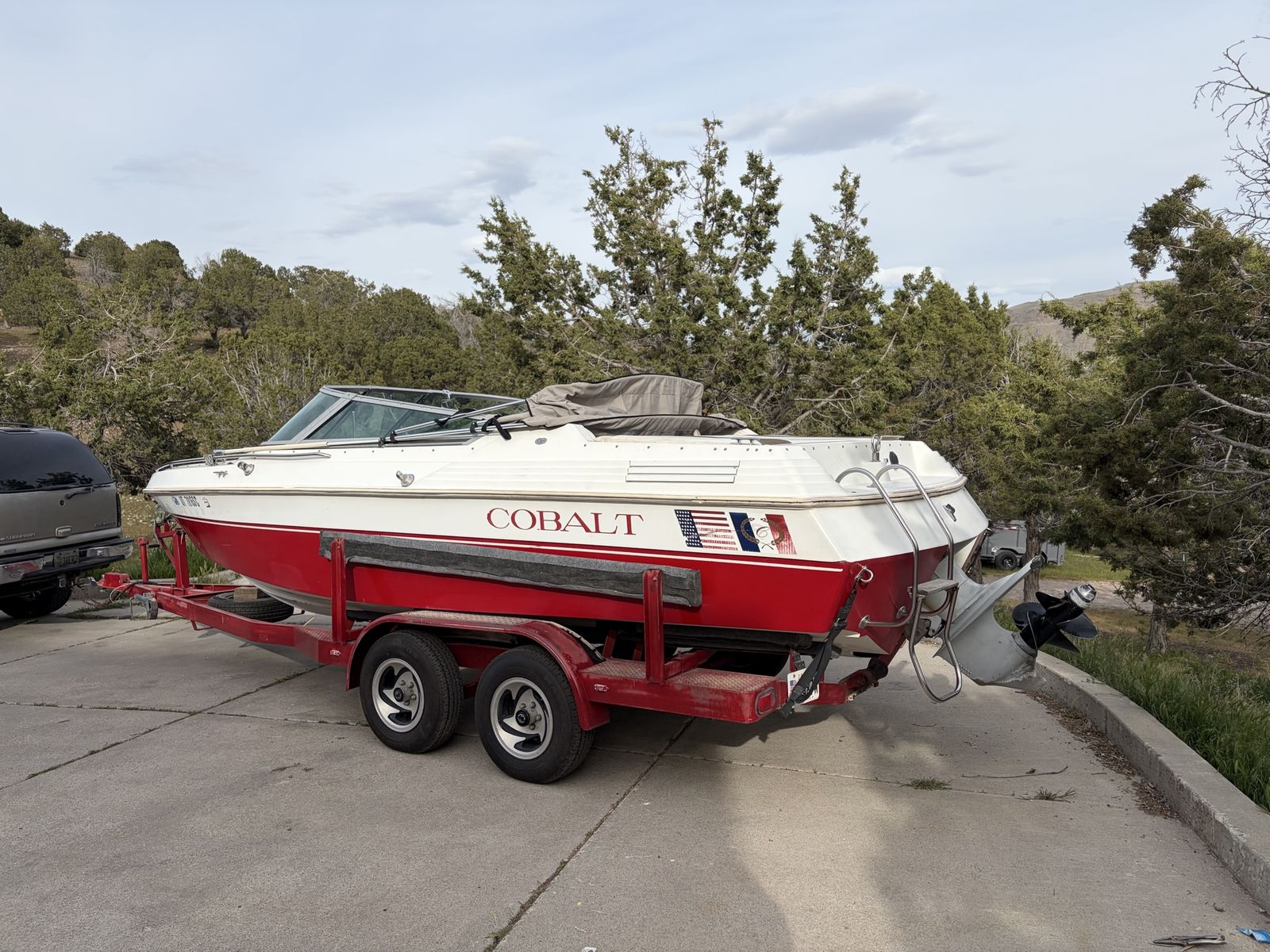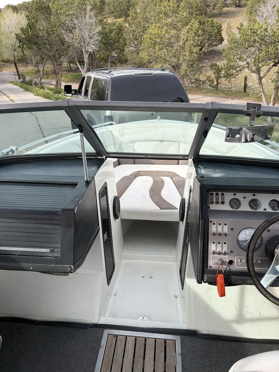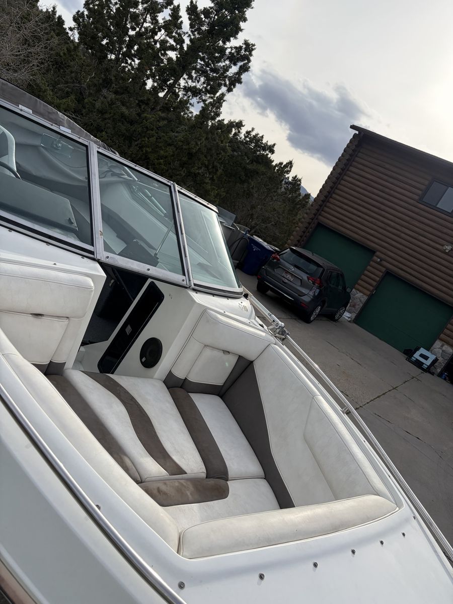 1989 Cobalt 222 with 5.7 inboard motor. Boat is in pretty good shape for its age. The motor was rebuilt in 2025 by the previous owner. I do not have paperwork on it but it runs great! Interior is in decent shape. I installed a brand new hummingbird helix 5 fish finder on it last fall. It comes with a wakeboard tower as well. It is not mounted currently. It has a cover that is in ok shape.. it does have some cosmetic damage on the hull and one side of the boat from the bunks. They will need to be fixed but it does not take on any water. Tires on trailer like new. It is still winterized as of now. You won’t see another Cobalt for this price! They are excellent boats! $7,000 obo or trade for a double axel enclosed trailer.