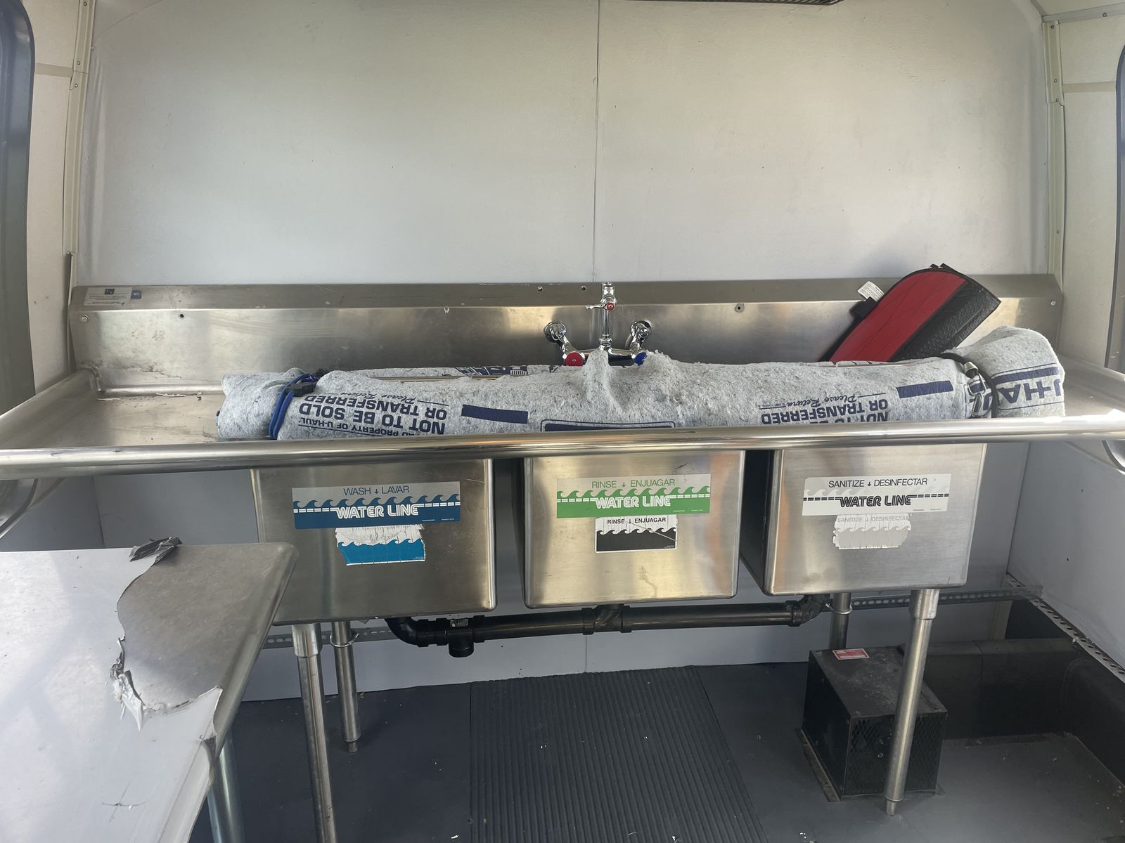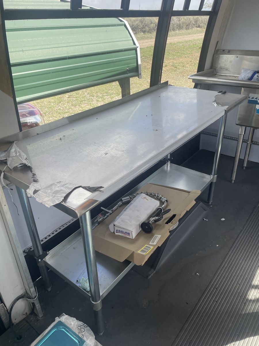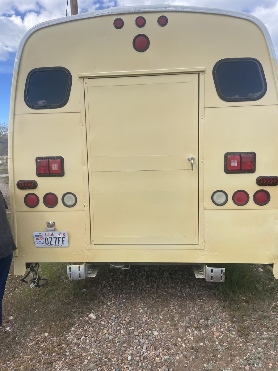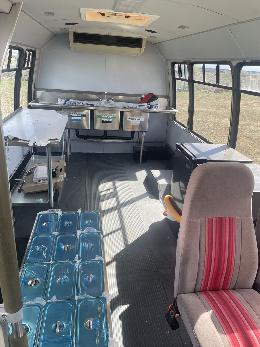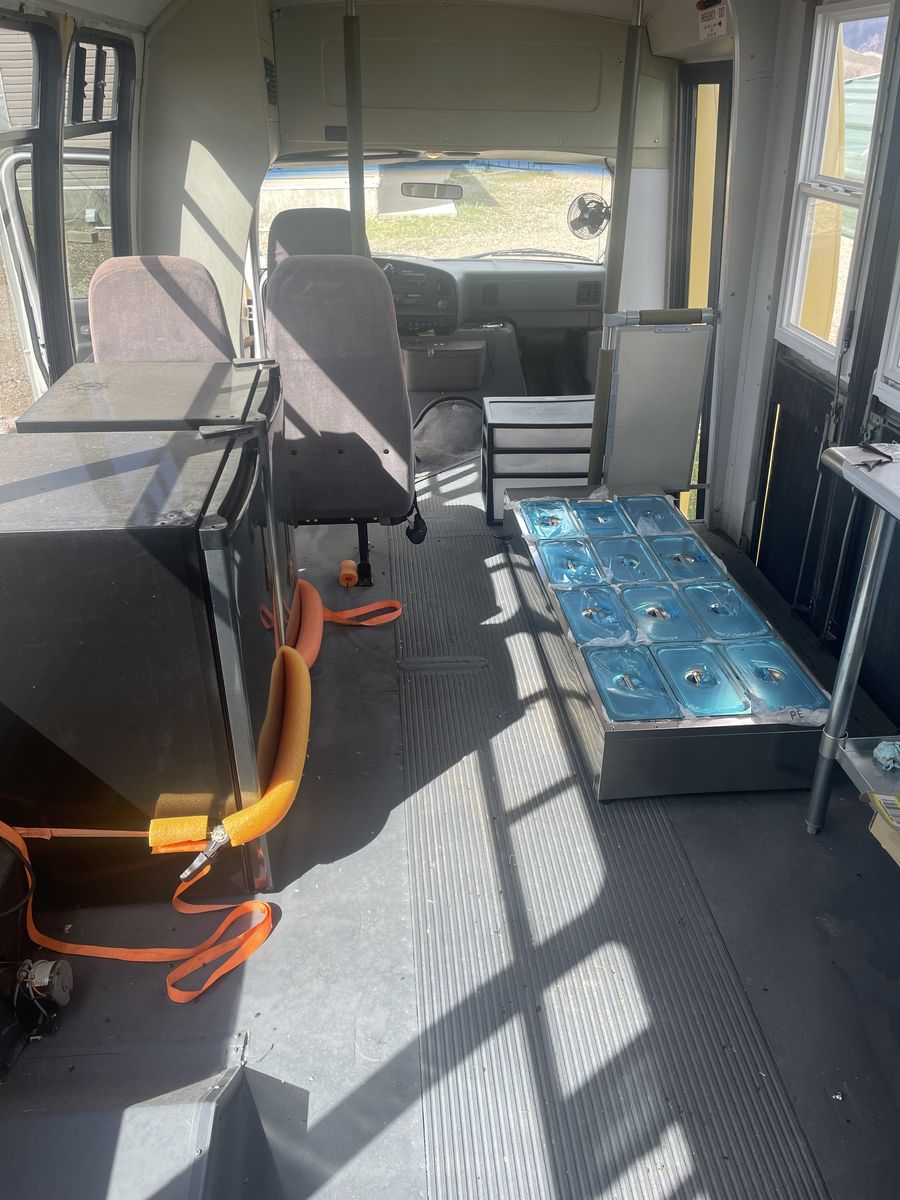 We started remodeling it into a food truck then changed our minds. Has a 460 motor and runs really well. 163,000 miles. Comes with Equipment: 12 pan portable Steam table w/2 glass shelves, aluminum table, 3 compartment sink, faucet w/extension, refrigerator, freezer.