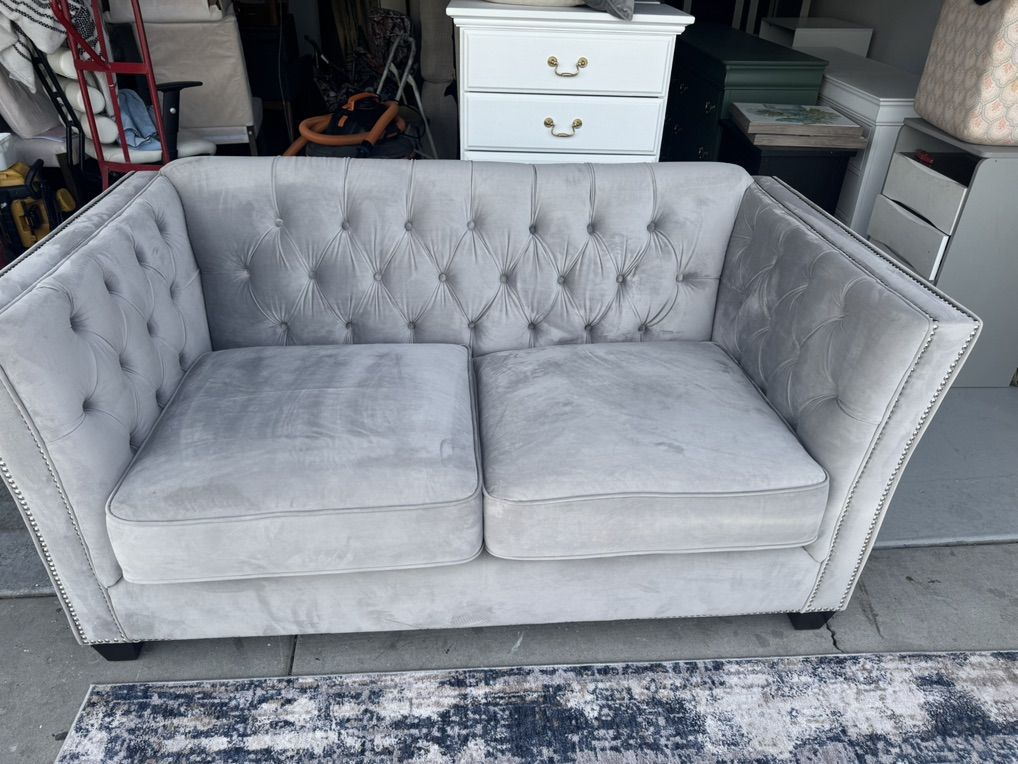 Deep Button Tufted Velvet Loveseat Arm Classic Chesterfield Settee,2 Pillows Included