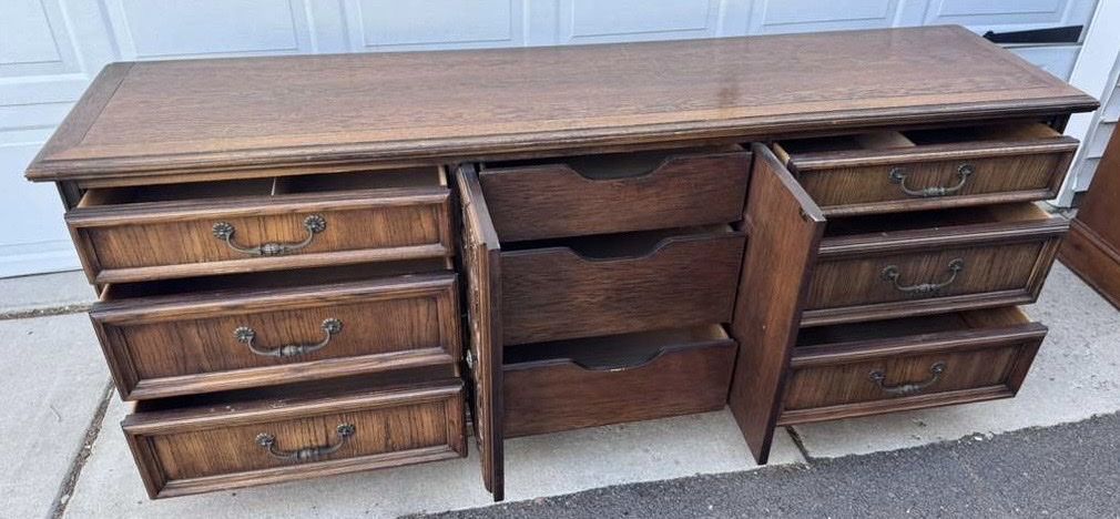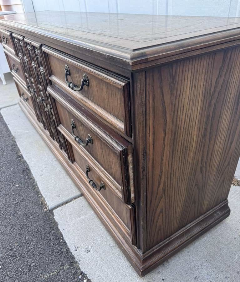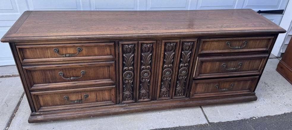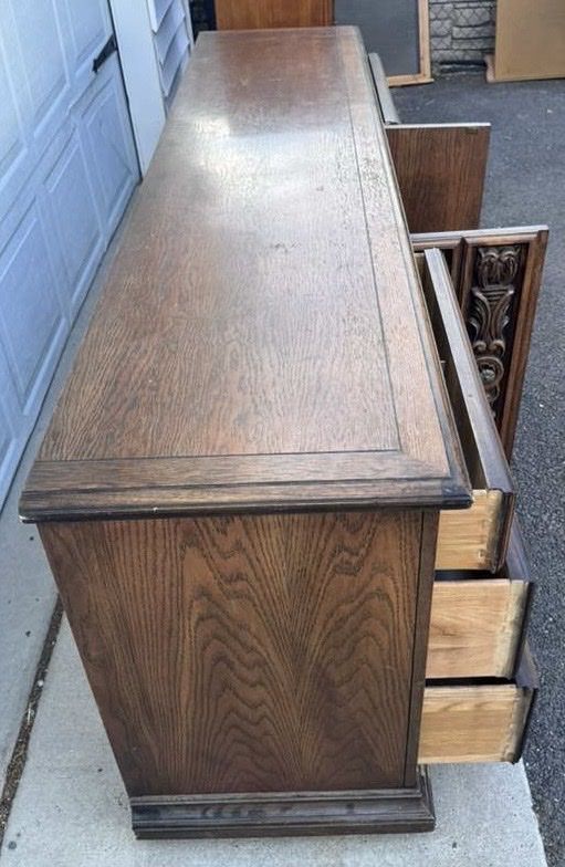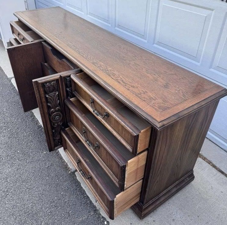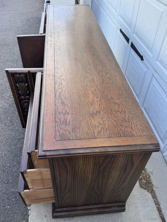 VenmoGorgeous dresser! One drawers doesn’t quite close all the way (see pic) but otherwise great. Willing to deliver for $50. 80 wide 19 deep 31 1/2 tall