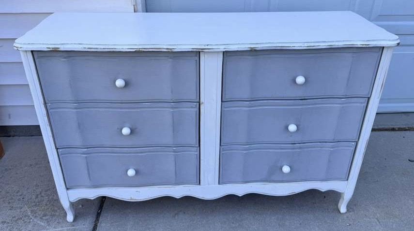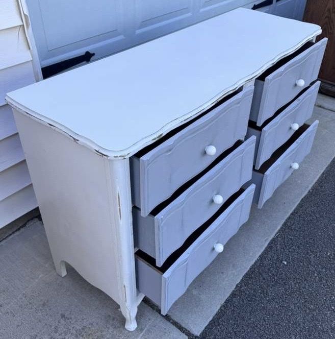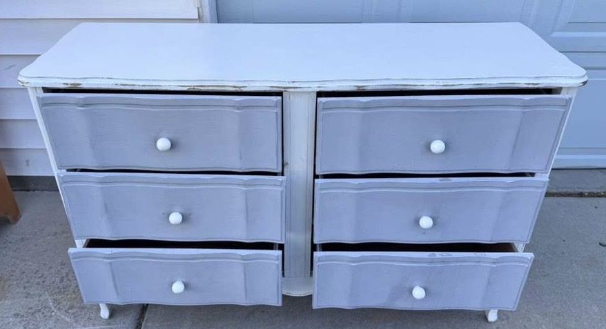 VenmoDarling dresser! Could use a paint touch up but drawers are good. Willing to deliver for $50. 50 wide 17 deep 31 tall