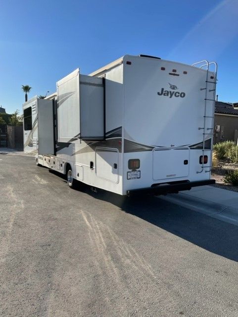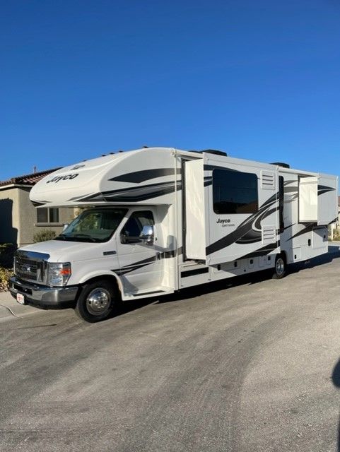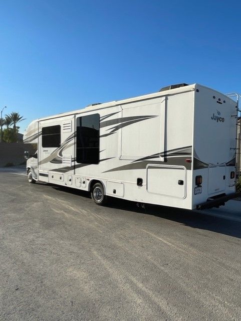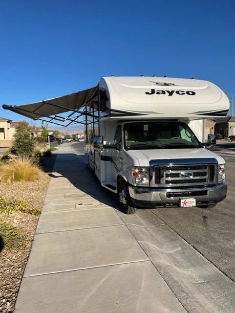 JUST REDUCED, Clean unit inside and out, approx. 43,500 miles, Ford 350 V10, (2) slide-outs, new power awning, new two seat power recliner, auto leveling jacks, refrigerator, microwave, oven, 2 A/C units, 4k generator, TV-DVD entertainment center, solar ready, full RV unit cover w/tire covers, will include tank clean out equipment and several electrical attachments. Make an offer. Serious inquiries only.