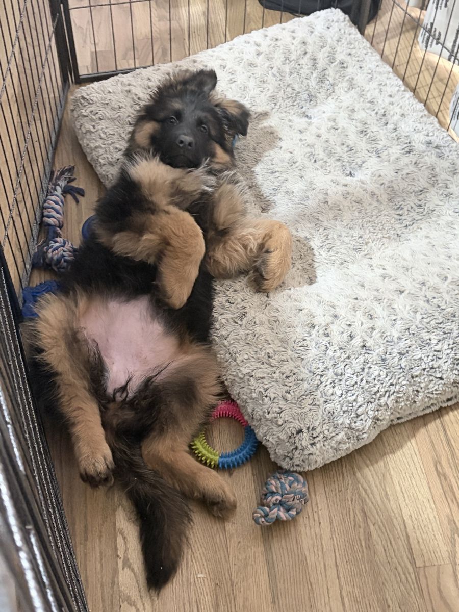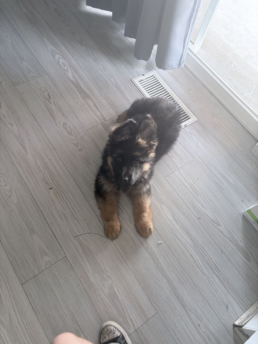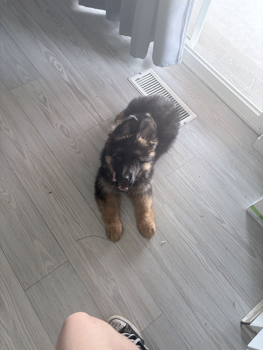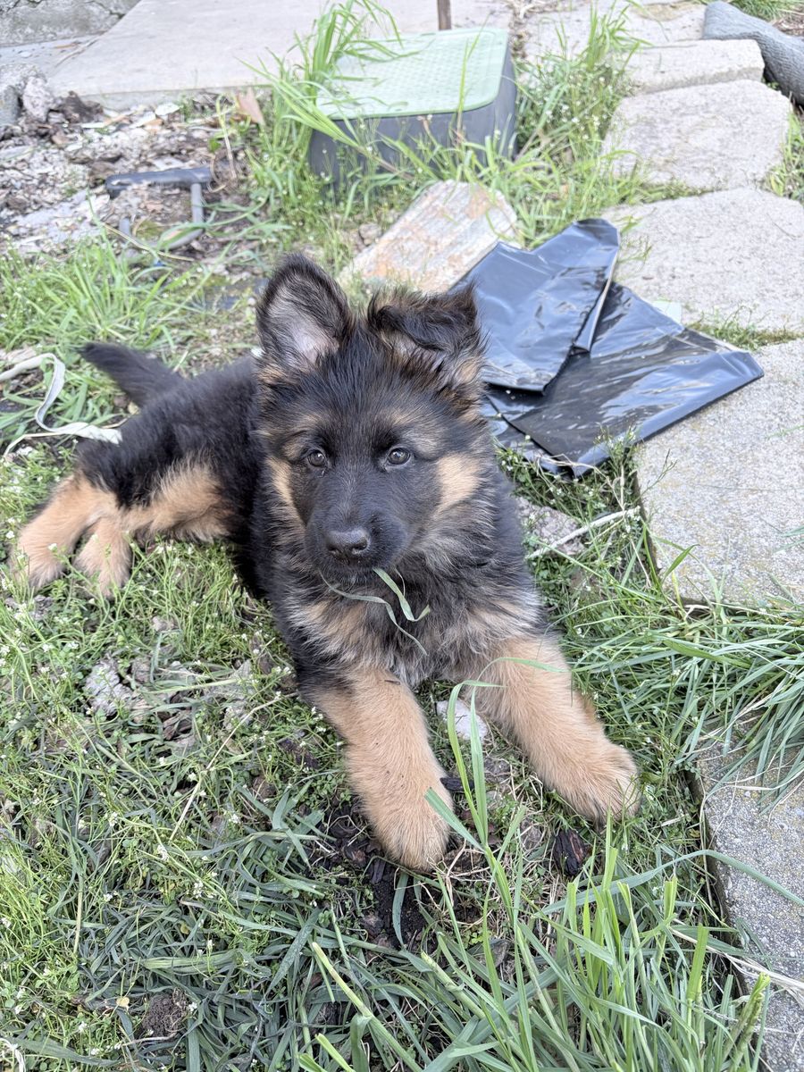 ApplePayAKC registered long-haired German Shepherd puppy available for rehoming. She comes from rare European show dog bloodlines with excellent structure, temperament, and intelligence.