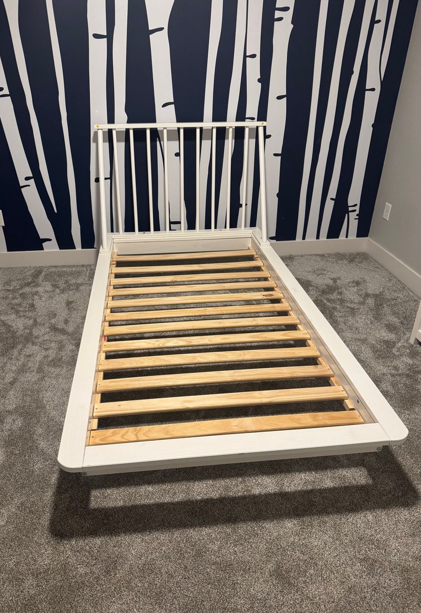 This is the Walker Edison Blaney Solid Wood Spindle Platform Bed (mid-century style). Originally purchased new for ~$349. The mattress was purchased separately from Costco for ~$200.