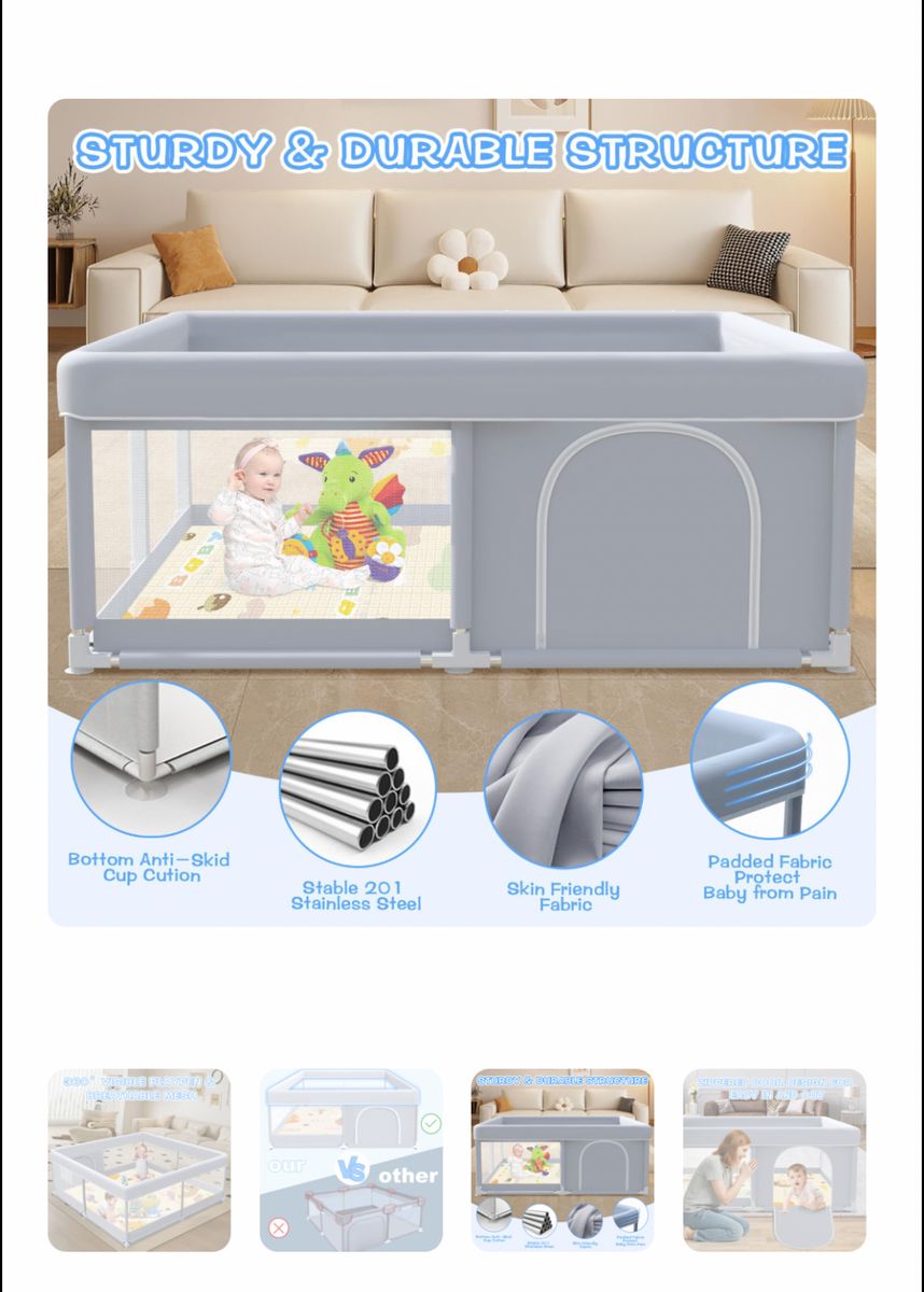 ApplePayXVISHX Baby Playpen with Mat, 50 x 50 Inch Play Pen Playards, Playpen for Babies and Toddlers, Baby Playard for Indoor & Outdoor Active Center Game Fence, Skin-Friendly Fabric and Soft Breathable Mesh