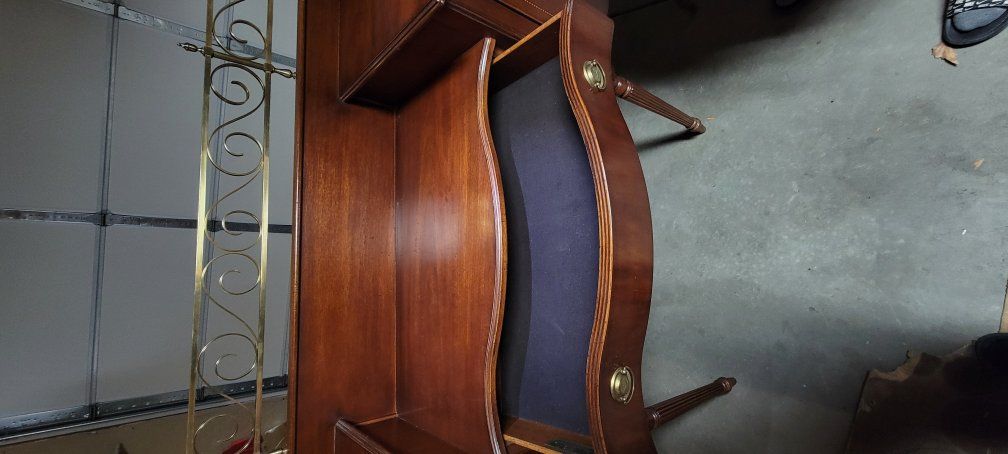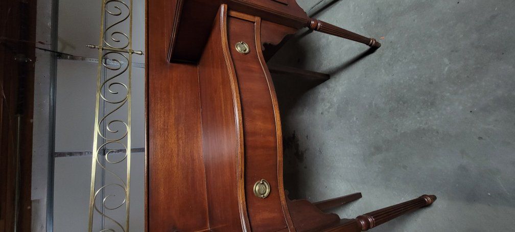 20th Century Sheraton Style Sideboard by Lexington Furniture Ind. The Palmer Home Collection. Sideboard on tall reeded legs with brass gallery. Measuring approx. 54" tall 69" wide 18" Deep