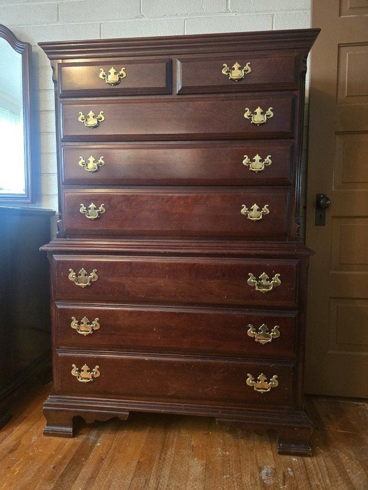 VenmoCherry wood bedrooms set King head board, Dresser with mirror, Tall chest $900 obo