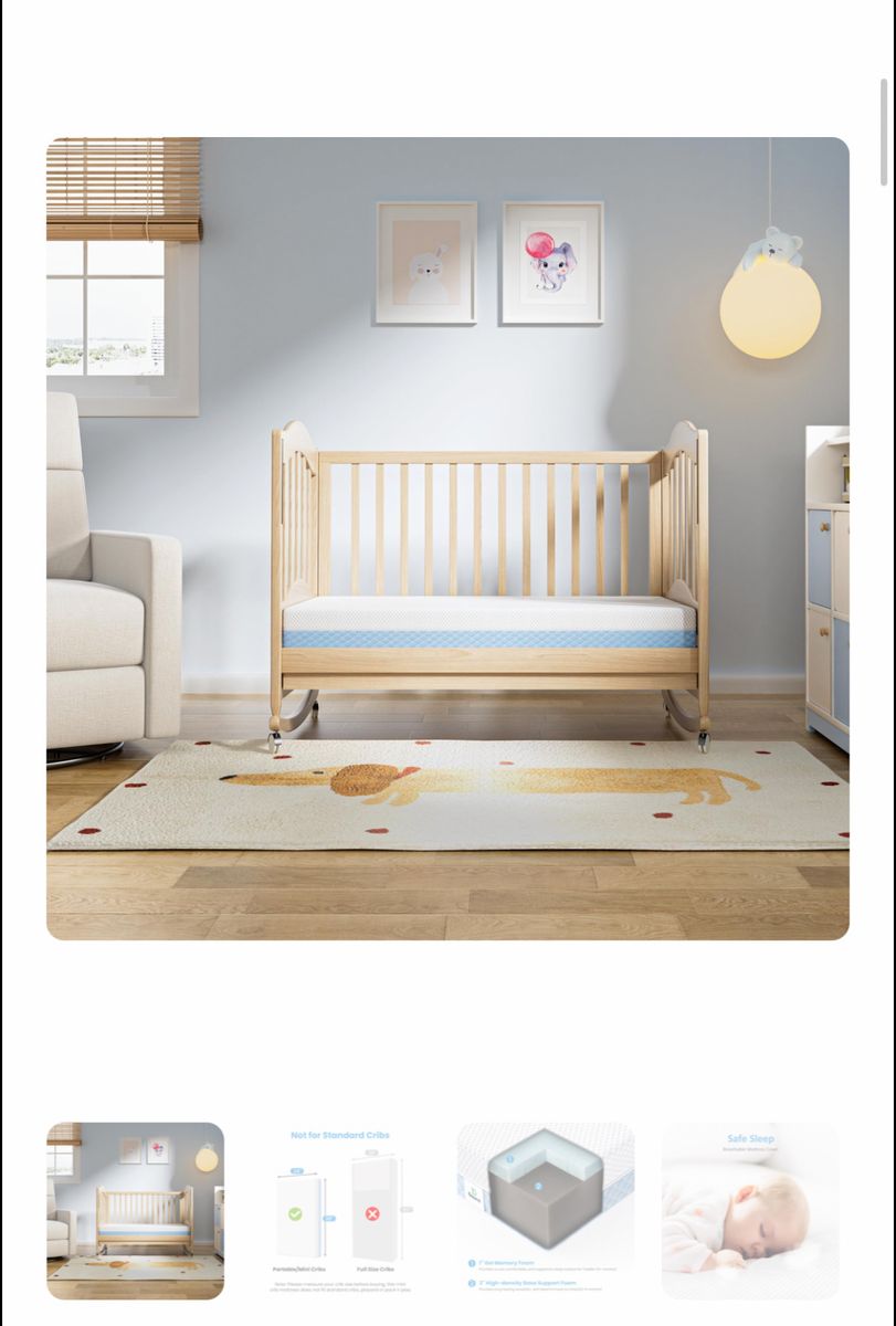 ApplePayDourxi Mini Crib Mattress, 38x24X4 Inch Dual Sided Comfort Gel Memory Foam, Breathable Premium Baby Mattress for Mini and Portable Cribs w/Removable Outer Cover - White&Blue. Retinas for $140