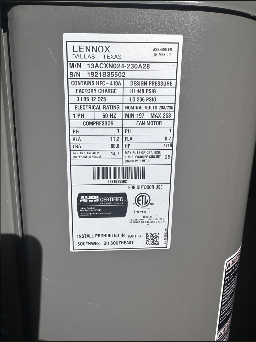 ZelleI have Lennox 2 ton ac with 3 ton coil for sale. NOTHING wrong with it. I got a 3 ton AC because this was too small for my house. It is still under warranty until 2031. I have the documents. If you see it, it is available. Thanks.