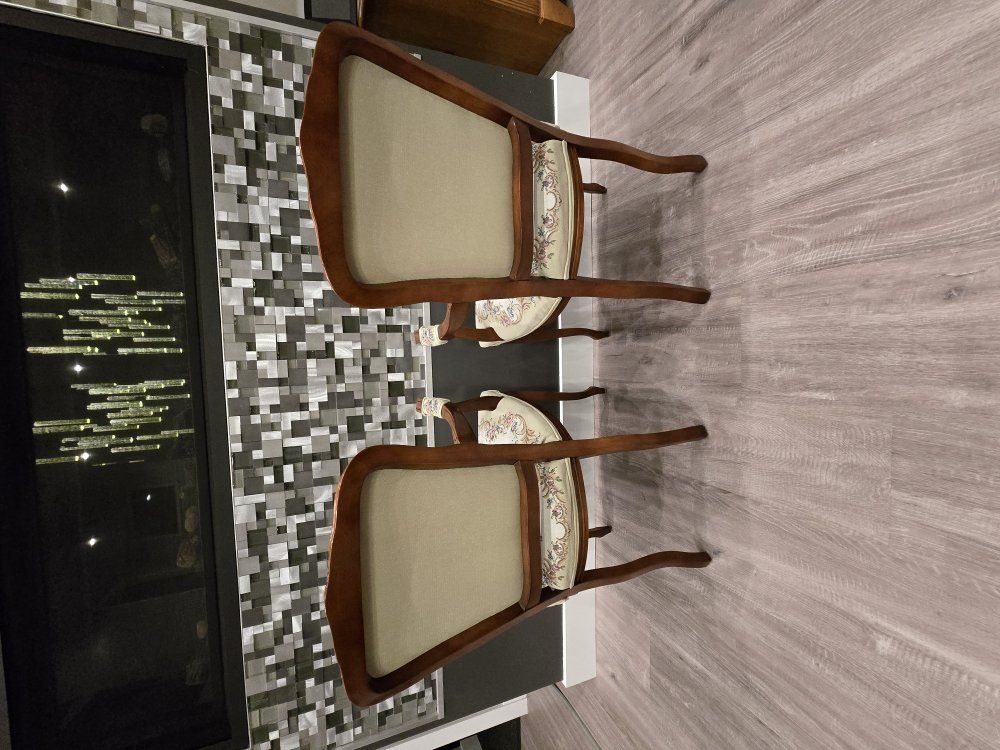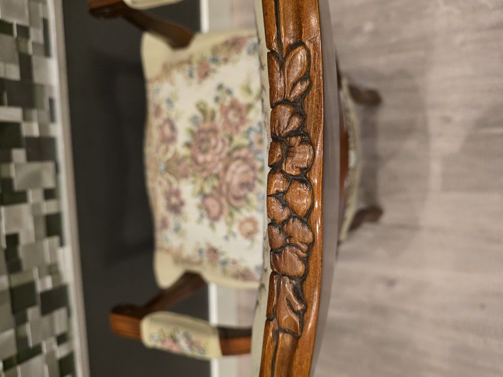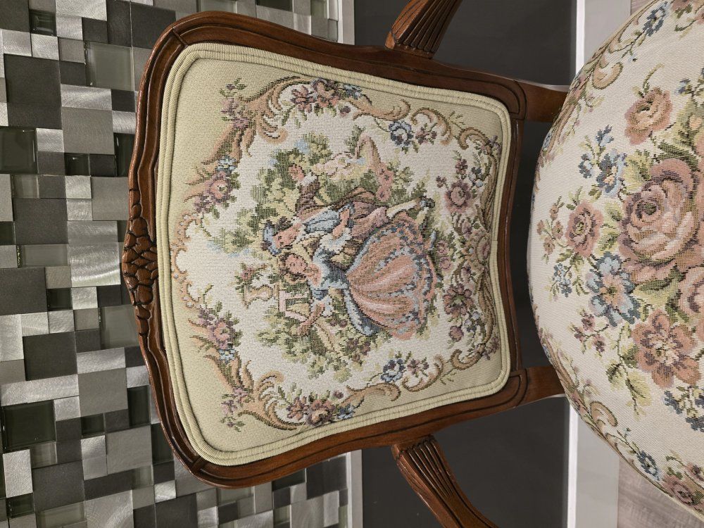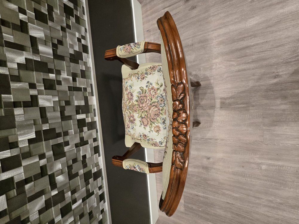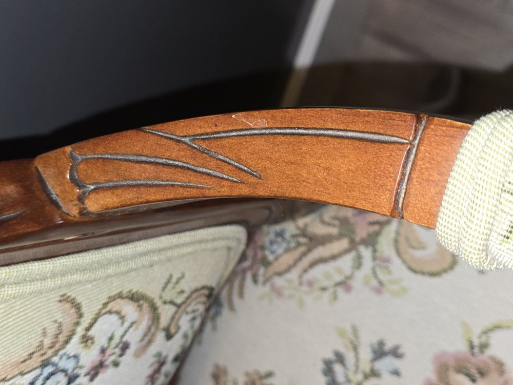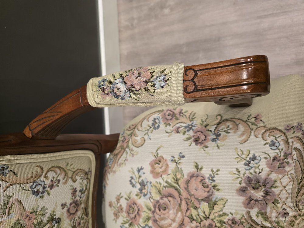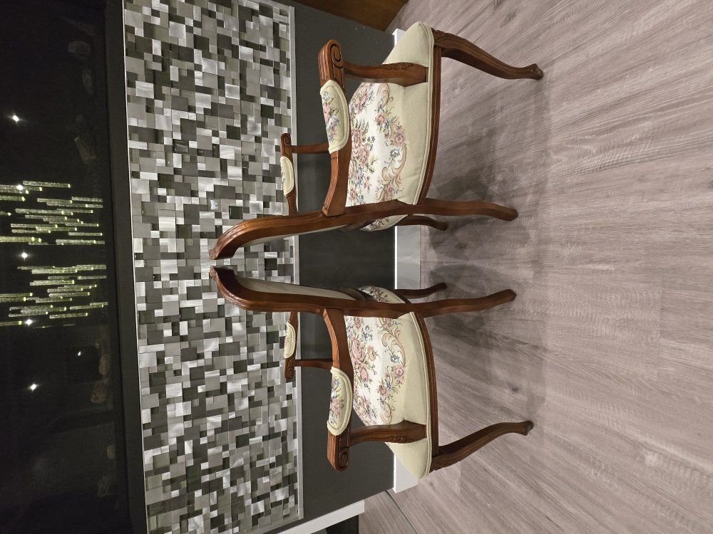 ZelleUp for sale is a stunning matching pair of Louis XV style "Fauteuil" armchairs. These are high-end designer pieces that perfectly blend European craftsmanship with professional American finishing. If you are looking for timeless "French Provincial" or "Grandmillennial" statement pieces, these are in incredible collector-grade condition. The Provenance & Quality: Authentic Italian Frames: The solid wood frames were hand-carved in Italy, featuring elegant Cabriole legs and ornate floral crest carvings. Designer Finished: These were upholstered and finished in the USA in October 2001. Workshop Provenance: Both chairs feature identical handwritten workshop markings on the underside material, confirming they were produced as a coordinated set. One chair still retains the original manufacturer law tags and production stamps. Pastoral Tapestry: The backrests feature a beautifully woven "Fête Galante" scene (classic 18th-century romantic parkland imagery), while the seats feature a matching floral bouquet. This is high-quality woven fabric, not a print. Lightweight & Sturdy: Despite being structurally rock-solid, these frames are relatively lightweight (likely beech or fruitwood), making them easy to rearrange in your home. Condition: Excellent vintage condition. They have been meticulously cared for in a smoke-free environment. The upholstery is clean with no stains, tears, or fading, and the high-density foam seating remains firm and comfortable. Terms: Sold as a matching pair only. $1,150 for the set. These are valued significantly higher in designer showrooms ($1,800+), but I am pricing them for a straightforward local sale. Location: Local pickup in Northern Utah. These will fit easily in an SUV or truck.