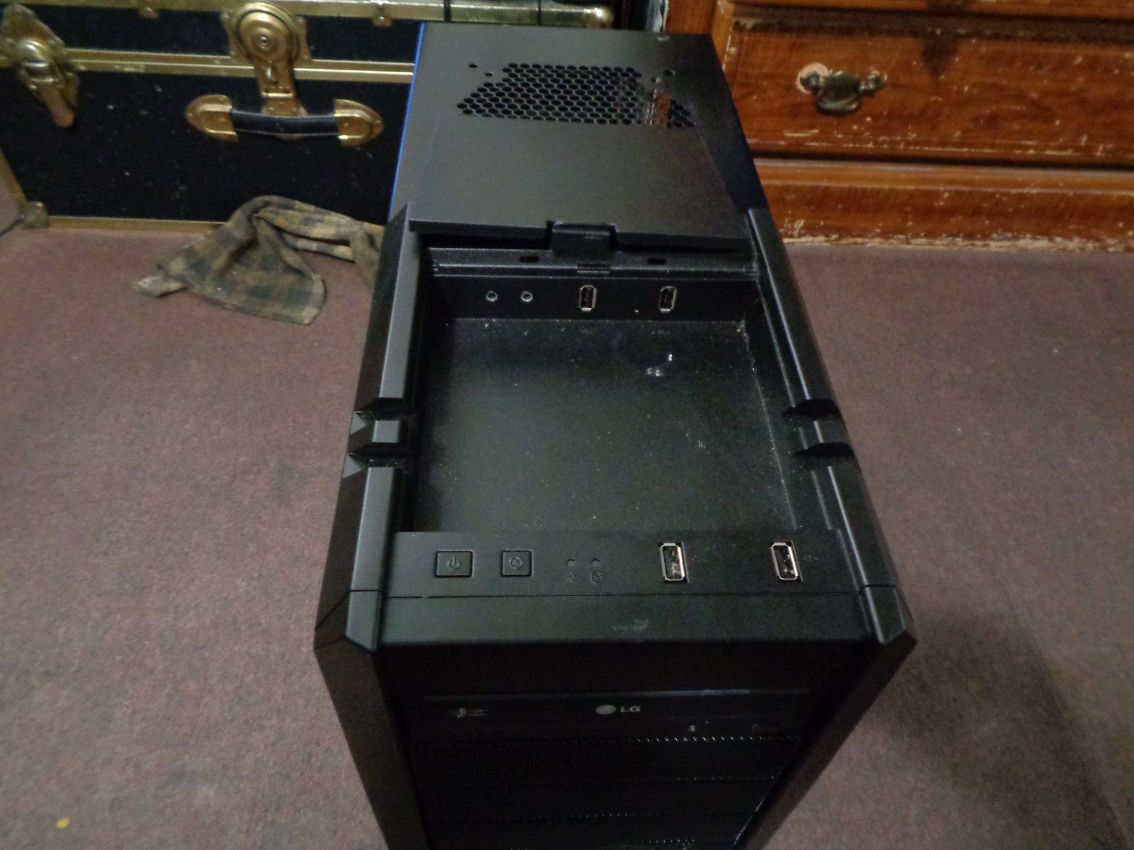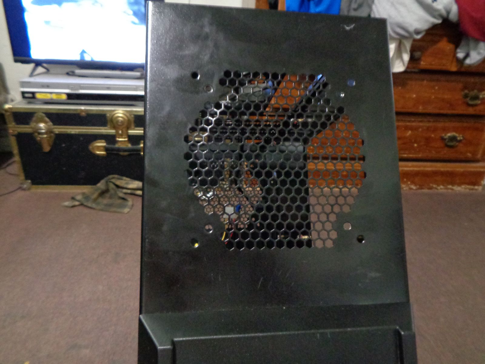 One of the 3.5 inch floppy drive covers is a little dented on the front.