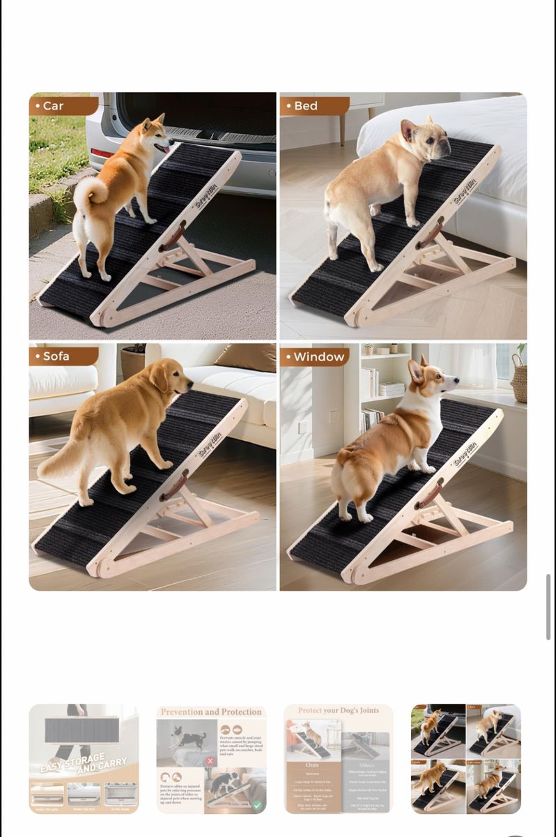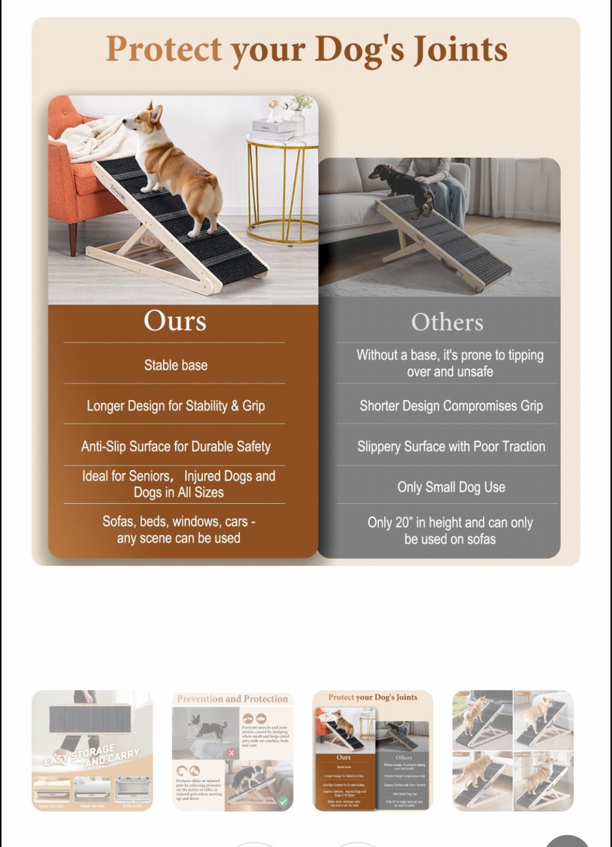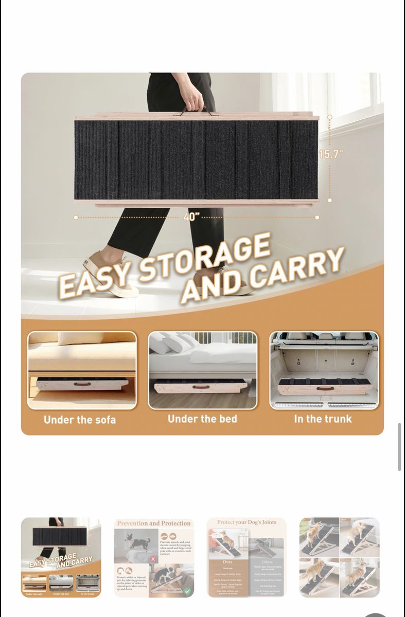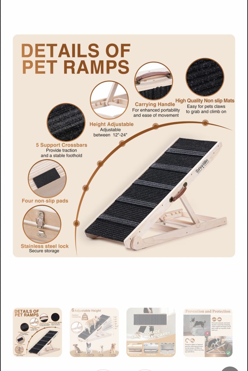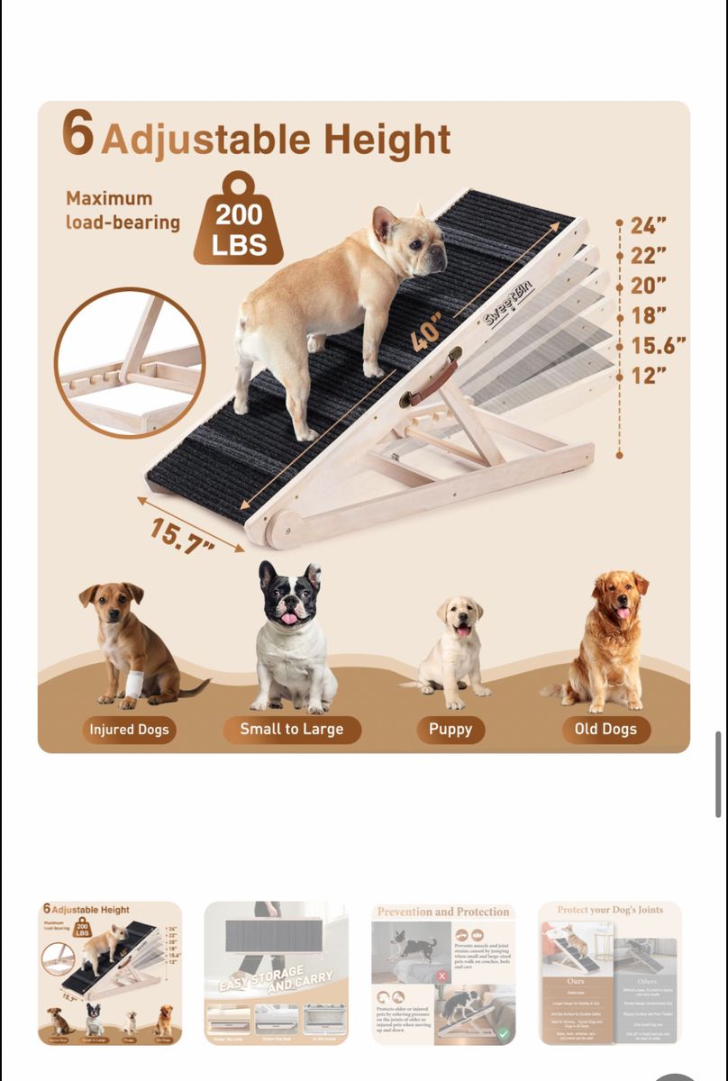 ApplePayDog Ramp for Bed - Foldable Small to Large Dog Ramp for Couch - 6 Adjustable Height from 12" to 24" - Stairs with High Traction Mat - Wooden Portable Ramp for Dogs to Get on Bed Couch Car Up to 200LBS. Retails for $90