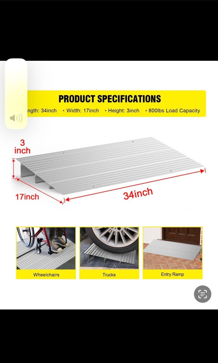 ApplePayDoor Threshold Ramp 3" Rise Door Ramp Aluminum Entry Ramp or Doorways Rated 800 lbs Load Capacity forWheelchair Scooters Power Chairs Walkers Metallic. Retails for $66. I have 2