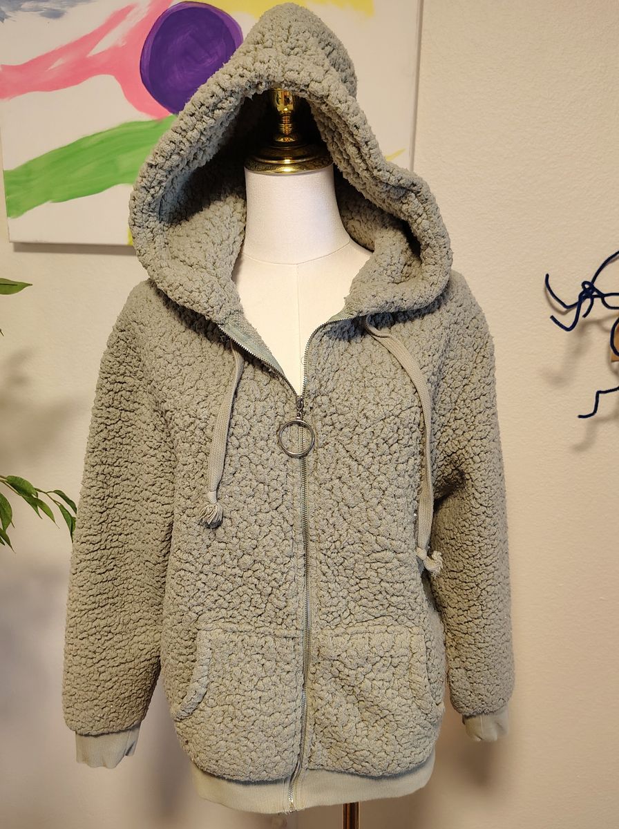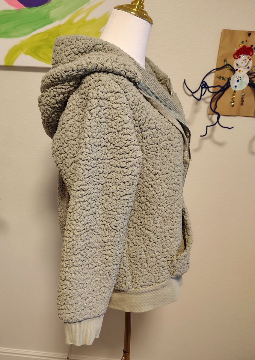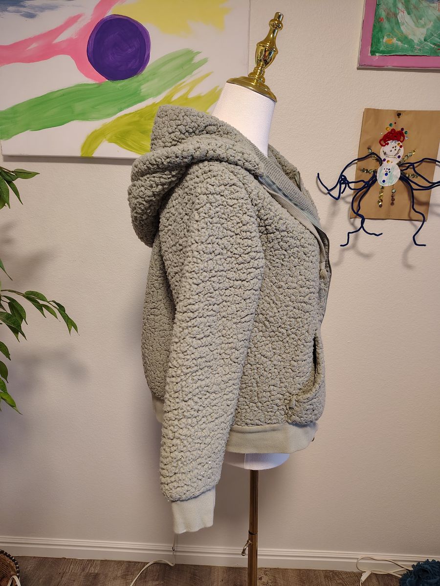 VenmoSoft and fuzzy green zip up hooded jacket. Lightly used but in great condition!
