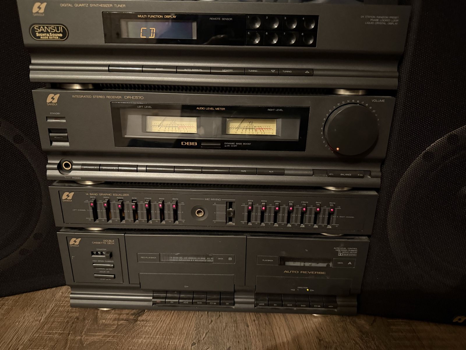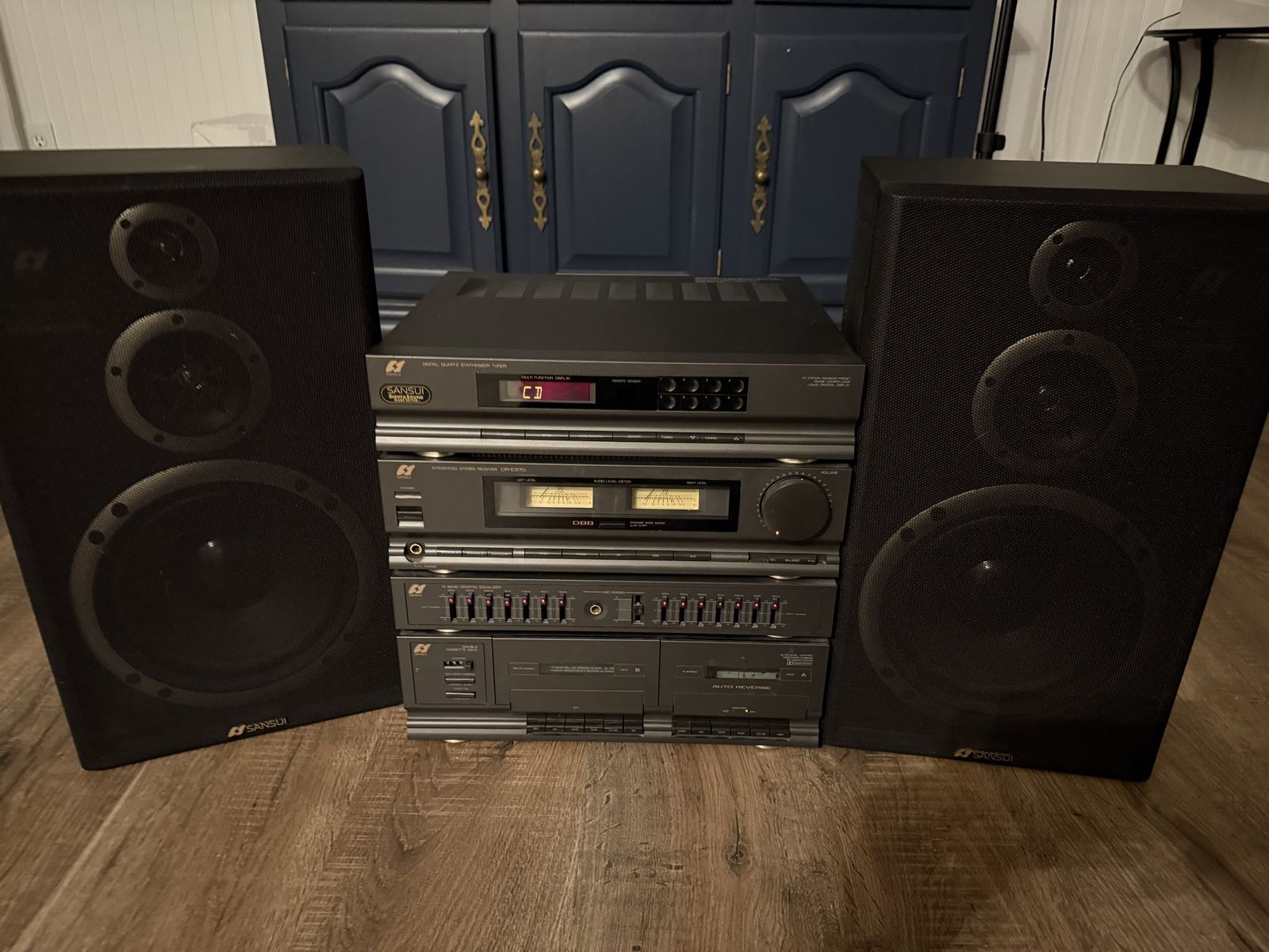 VenmoThis is a nice stereo receiver. It is Sansui. It is dual cassette and comes with the two speakers pictured. And have a great sound. It was tested to work. Please review photos and ask any questions. I live in Layton, but commute to Ogden in Salt Lake City often.Thanks for looking.